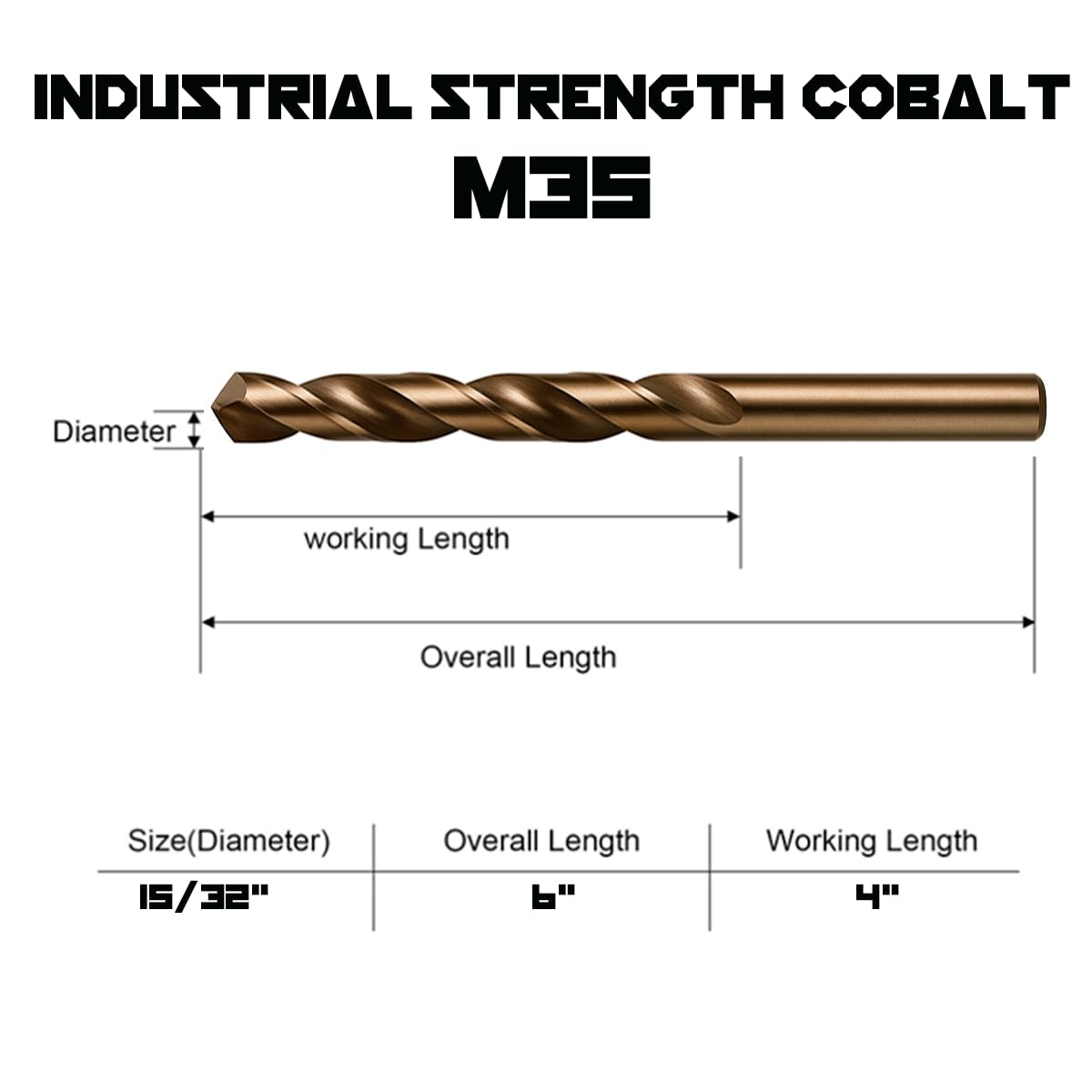 M35, FULLY GROUND, 135° SPLIT POINT - Our Drill Bits Contain 5% Cobalt, Are Fully Grounded for a Precision Drilling Diameter. 135° Split Point Design Makes it Easier to Drill Repeated Holes in Harder Materials.