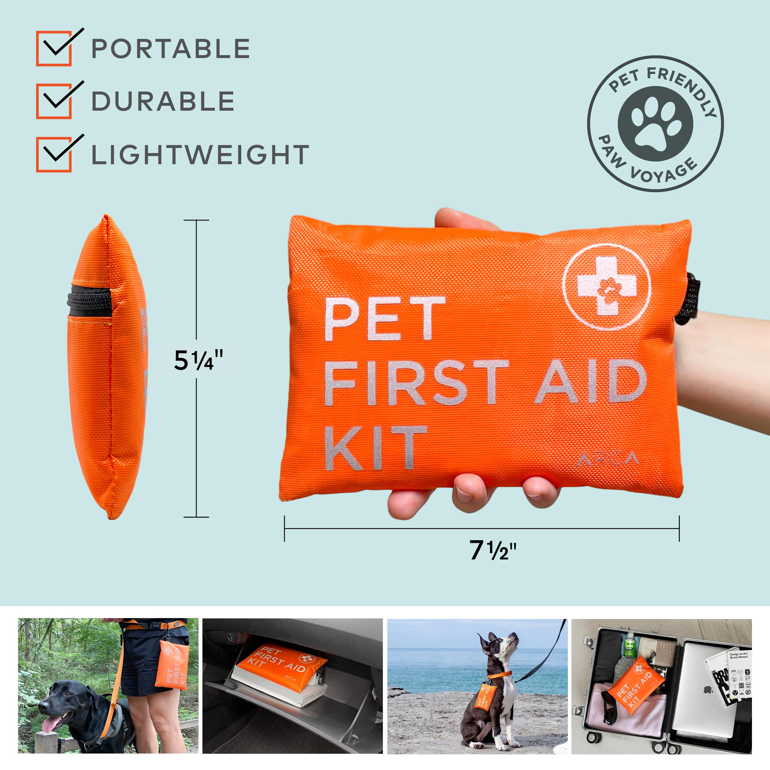 READY FOR ADVENTURE: ARCA PET First Aid Kit for dogs, with dog travel accessories, ensures preparedness for minor and major situations, providing your pet the care it needs on your outdoor excursions.