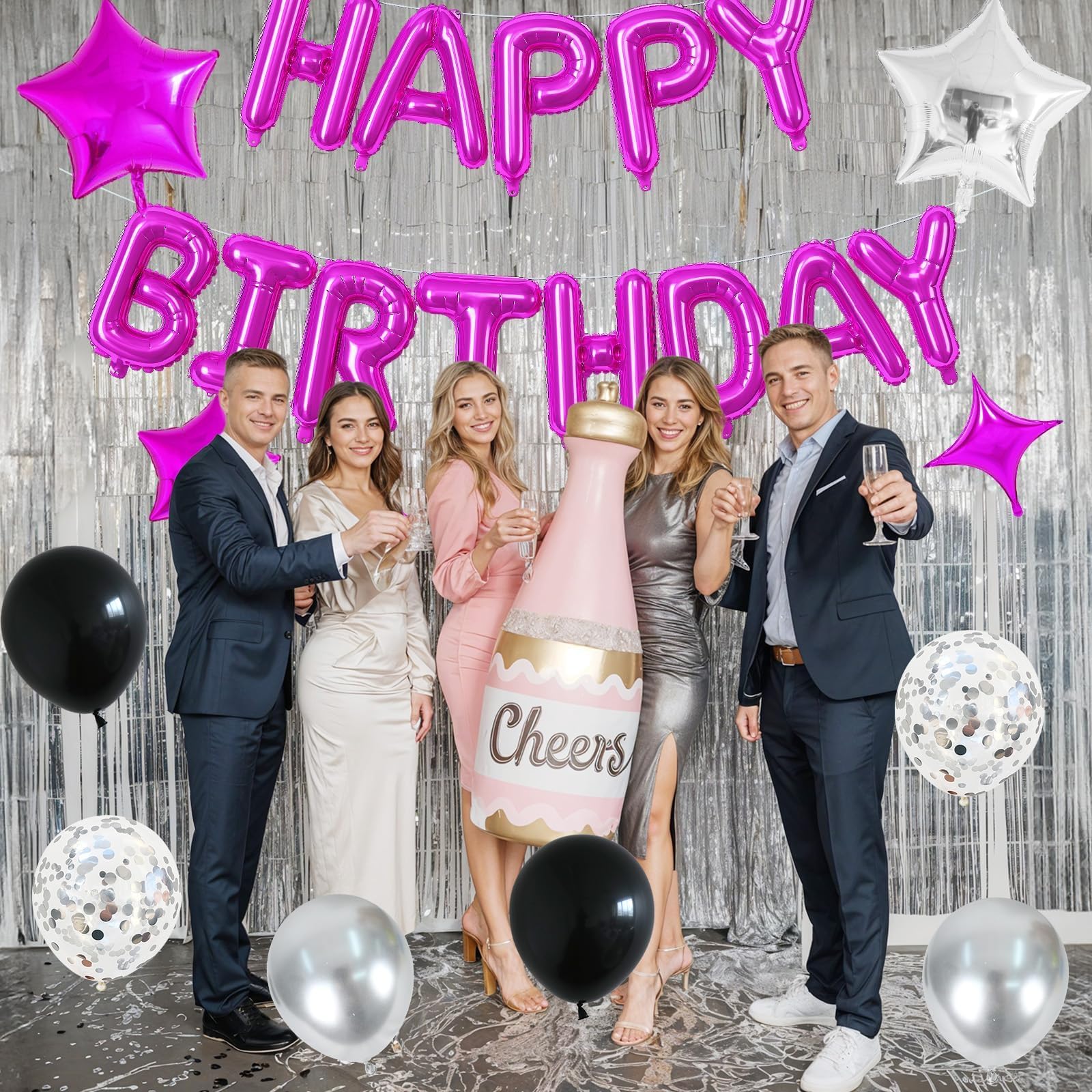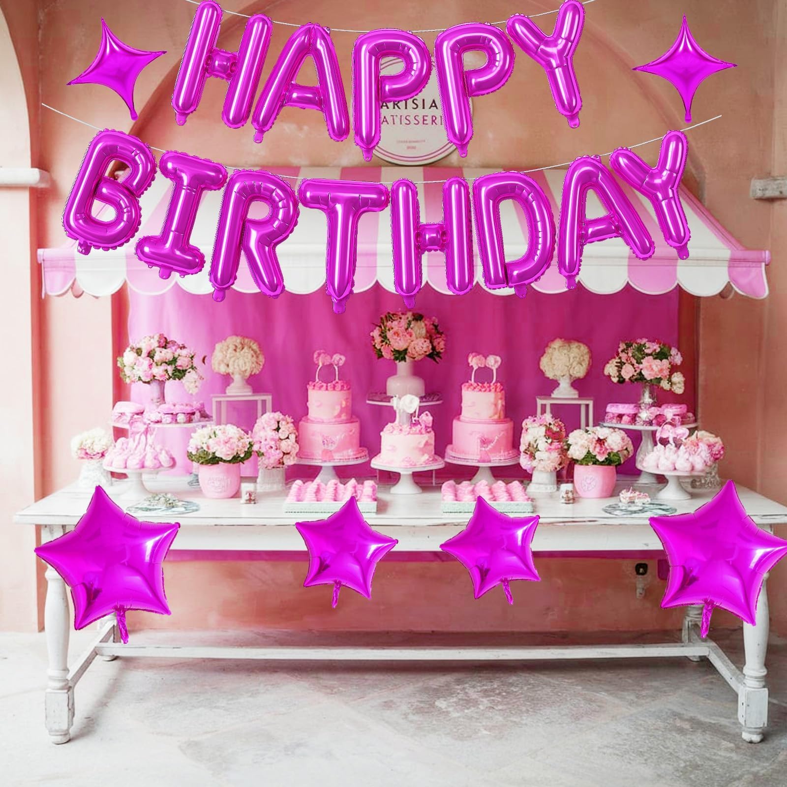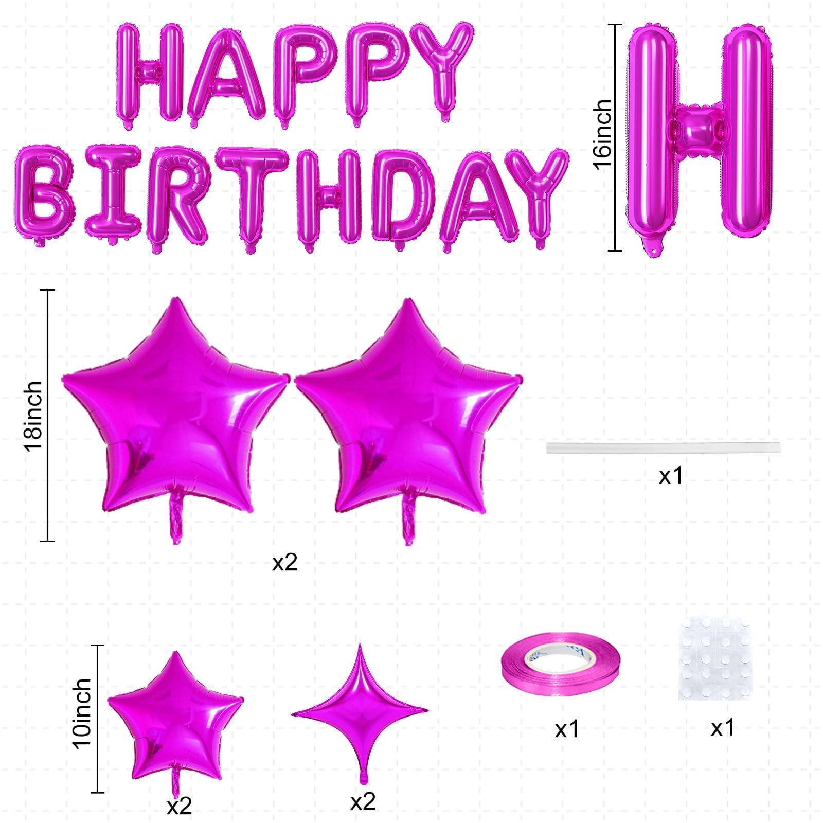 VALUABLE PARTY DECORATION SET β Create an unforgettable birthday celebration with our Happy Birthday Balloons Banner set! Includes a 16-inch hot pink Mylar Foil Letter Balloons set, 4 hot pink star balloons, plus essential accessories like a ribbon, glue dots, and a straw for easy setup. Everything you need for a stylish and hassle-free party!