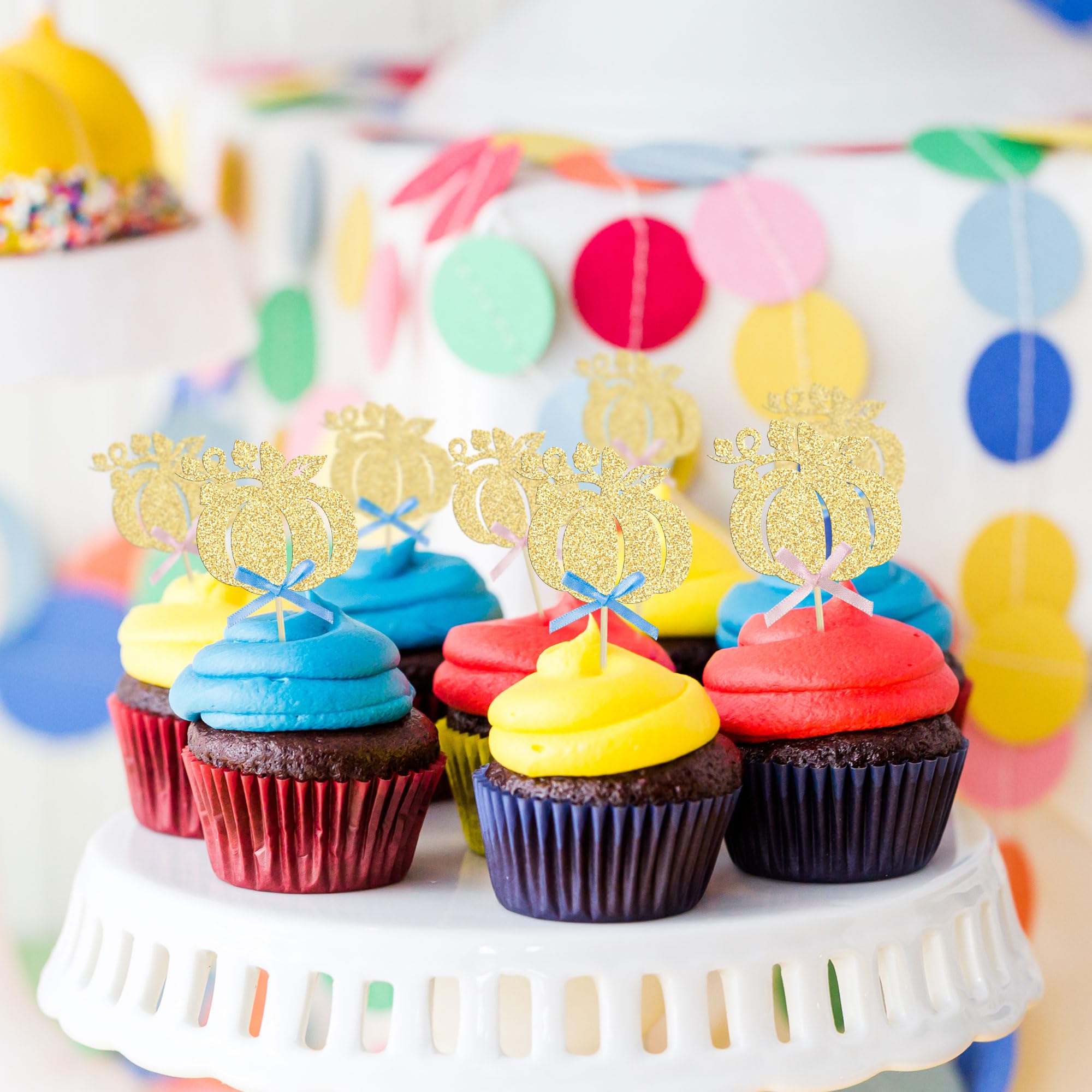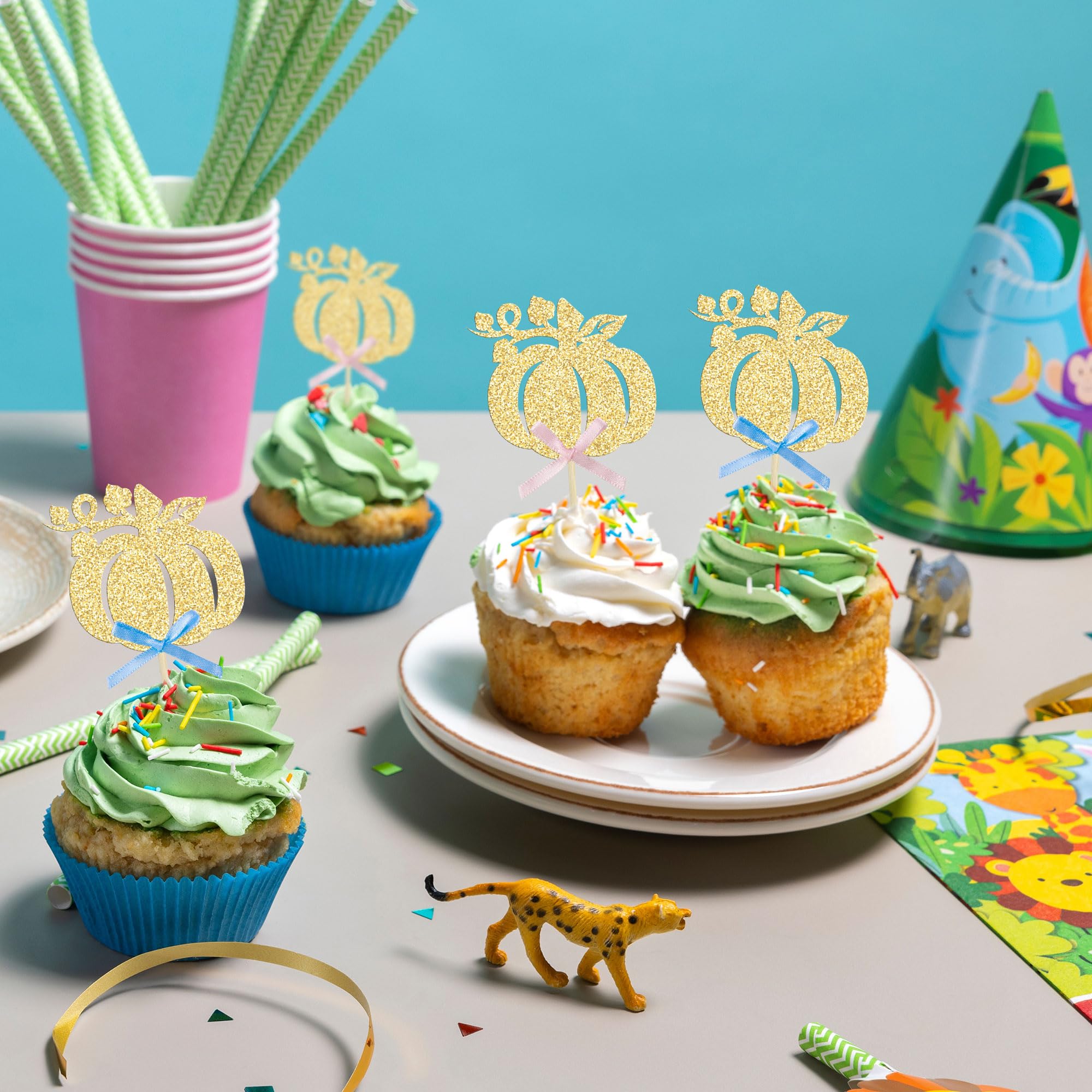 -These Pumpkin with Ribbon Cupcake Toppers are so cute and good for Halloween theme party, pumpkin theme party, fall theme party, baby shower theme party, kids birthday theme party cupcake decorations. They can make your cupcake more attractive and bring the fun to your party. You can also apply them for ice cream, fruits, cookies and other desserts.