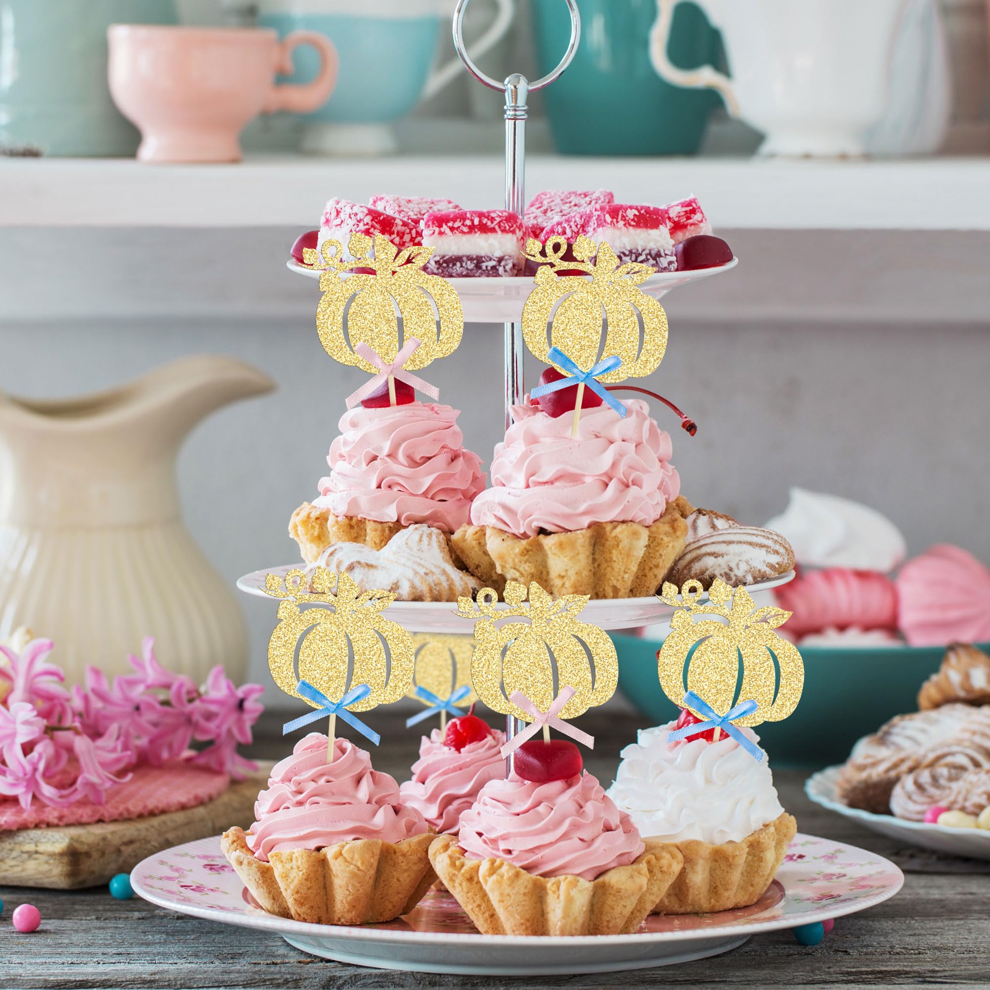 -Package included: 24Pcs Pumpkin with Ribbon Cupcake Toppers. Comes with assembled, so you can insert into your cake directly, which make your cake more interesting.