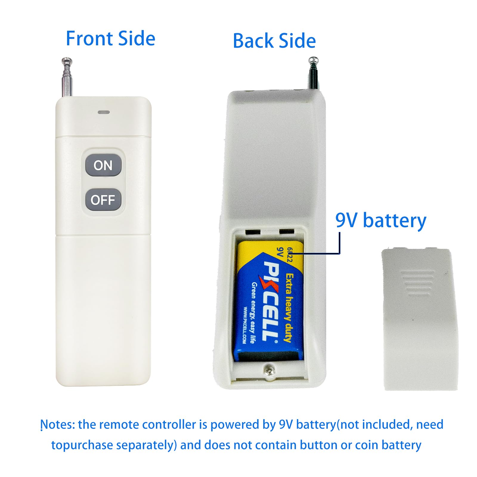 Outdoor Security Alarm System: The fire siren can be controlled remotely from up to 2000 meters away, making it suitable for large area security needs. However, please note that obstacles may reduce the effective range of the remote control. Notes: the remote controller is powered by 9V battery(not included, need to purchase separately) and does not contain button or coin battery