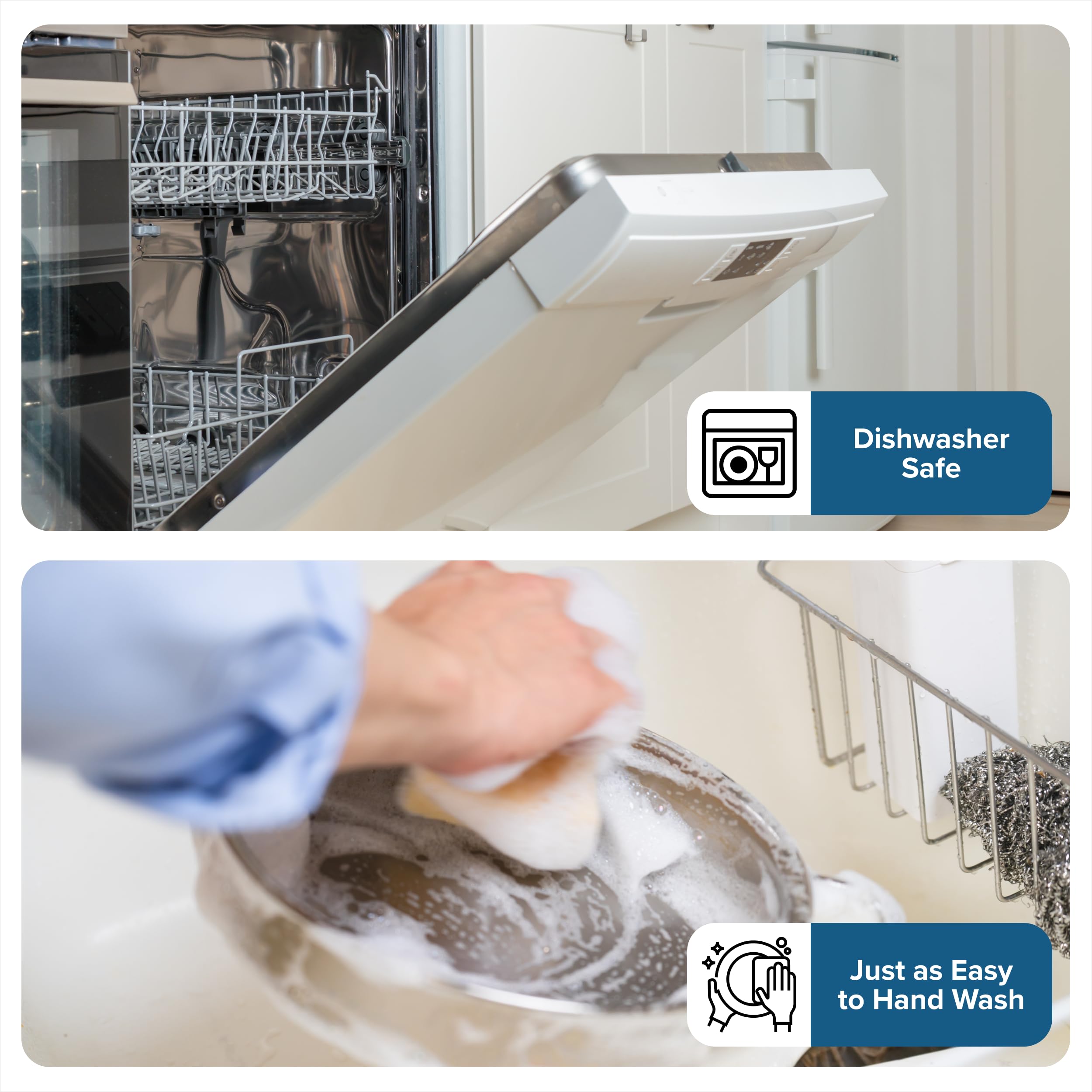 SAFE HANDLING: This stovetop griddle features cast iron handles which allow you to easy manuever from the stove to the oven; flat top griddle is dishwasher safe, hand washing is recommended