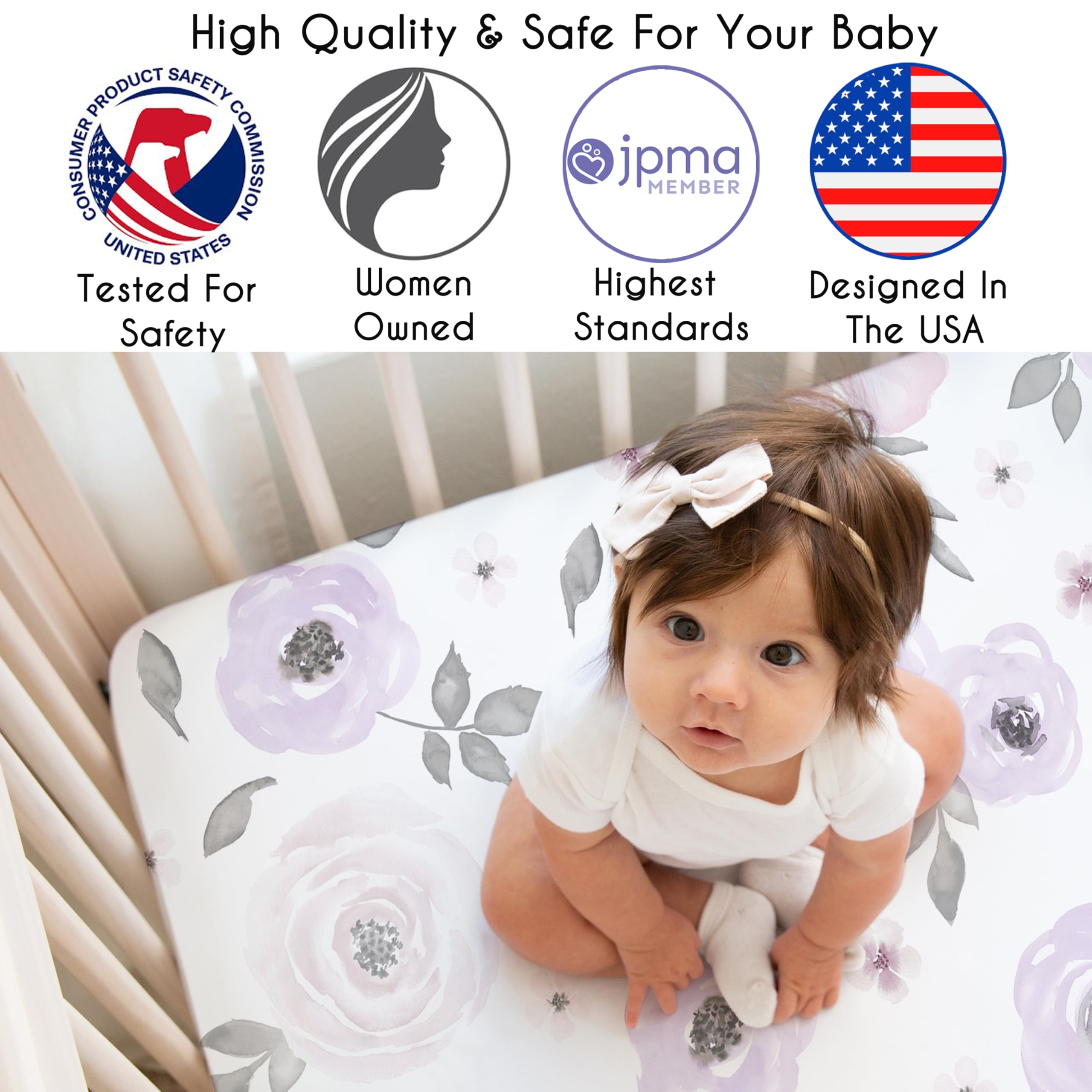 DESIGNED IN THE USA: By real parents who understand the need for comfort, practicality, and style. Sweet Jojo Designs is a small, women owned business. The mom's on our team know pack and play sheets are first priority for your baby essentials to ensure a restful night of sleep. We use top fabrics and designs to create soft mini crib sheets fitted that are stretchy and comfortable for your infant. We've studied the latest trends in floral mini crib sheets girl to bring you the finest product.