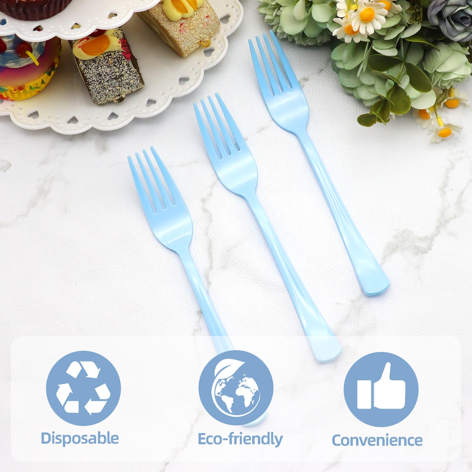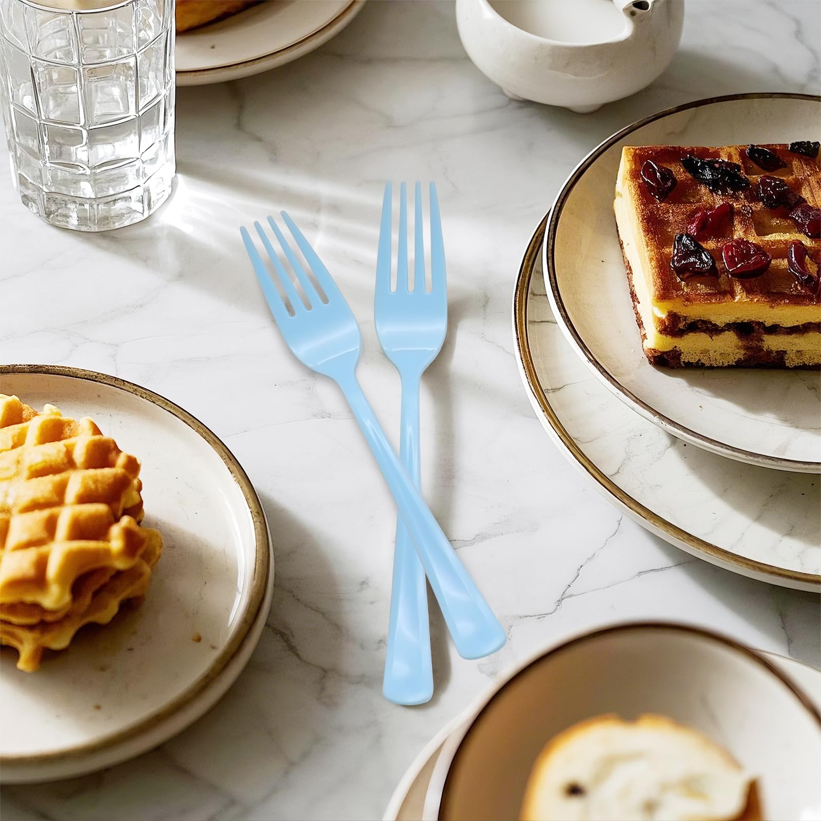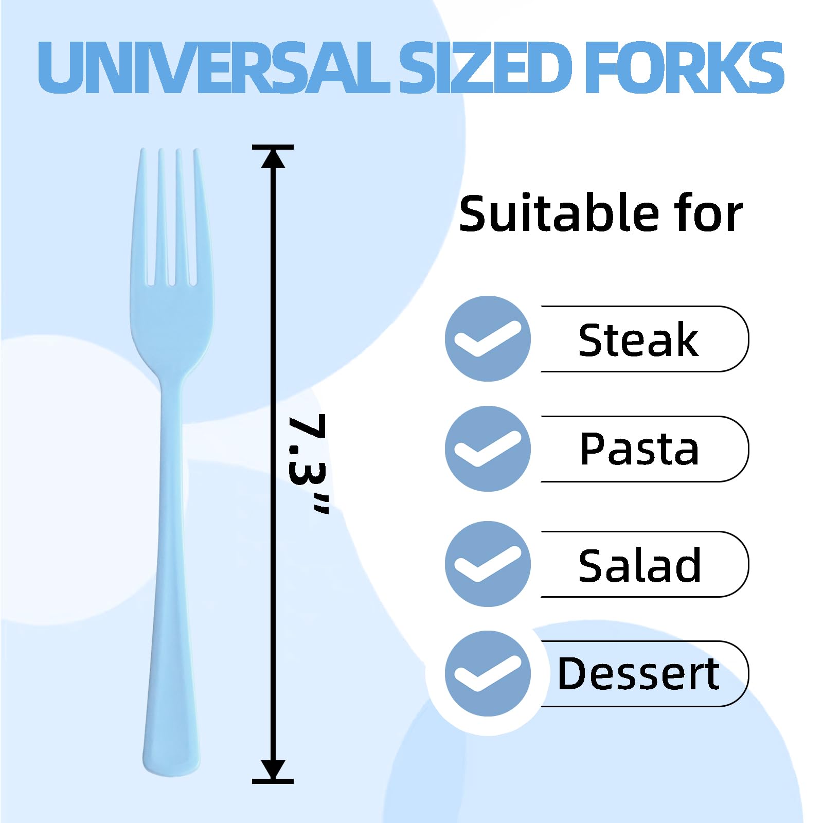 【Sufficient Quantity】: Includes 50 pack of heavy-duty 7.3 inch blue plastic forks. Perfect for baby shower, birthday, wedding, picnic or whatever your celebrated event is. Offering multiple different color options, they are sure to match your decor.