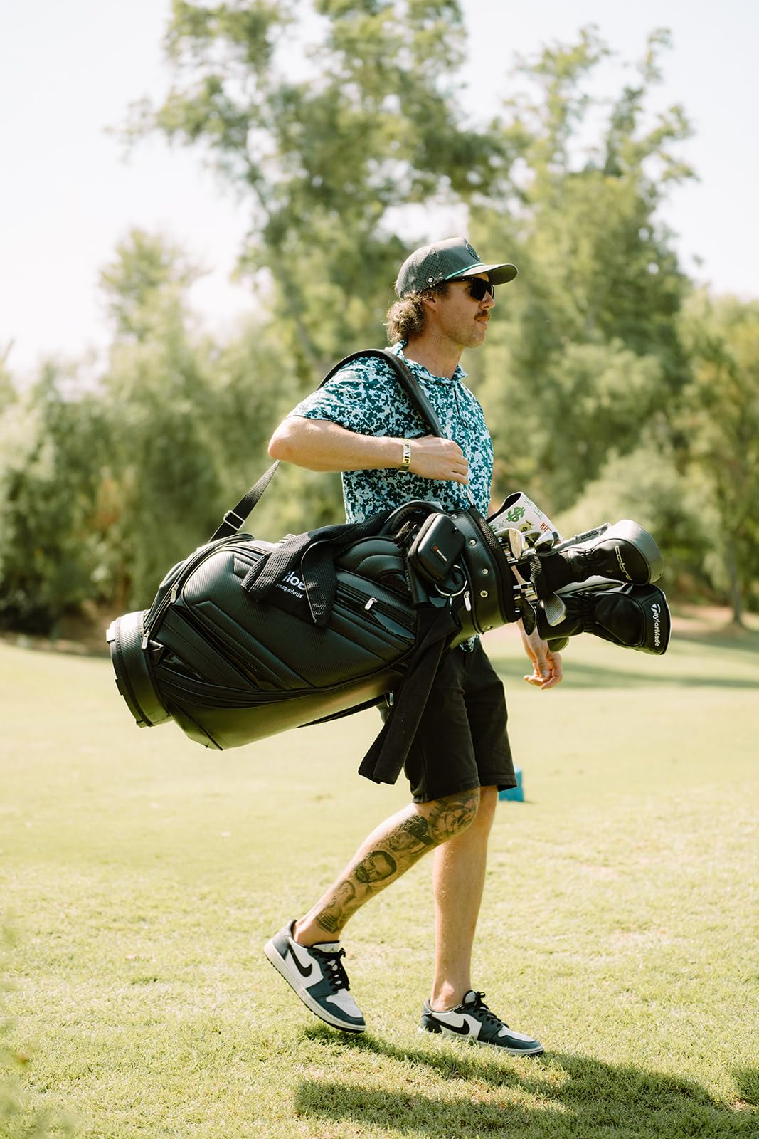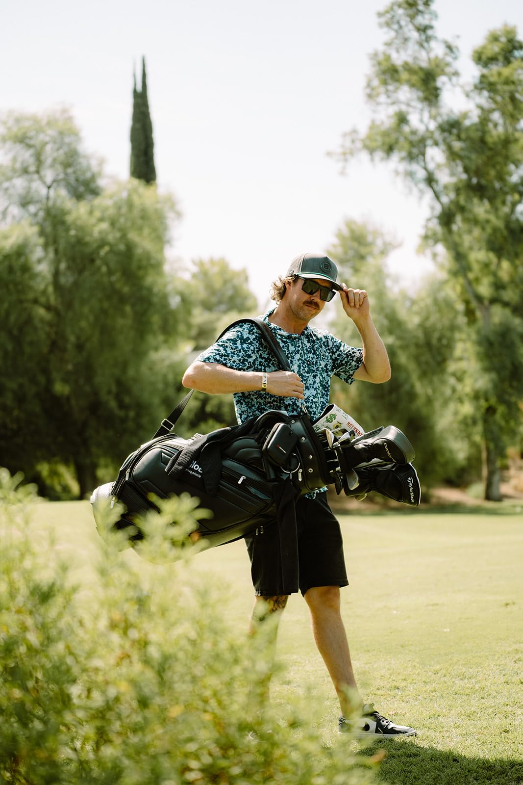 CLASSIC DESIGN, MODERN PERFORMANCE: The five-panel baseball cap style is complete with a magnetic ball marker clip that attaches to the hat, a hole on the side of the hat to hold your tee, 3D rubber mold patches, and is made with a polyester spandex blend with a built-in sweat band for superior sweat resistance, flex-fit hold, and ventilation.