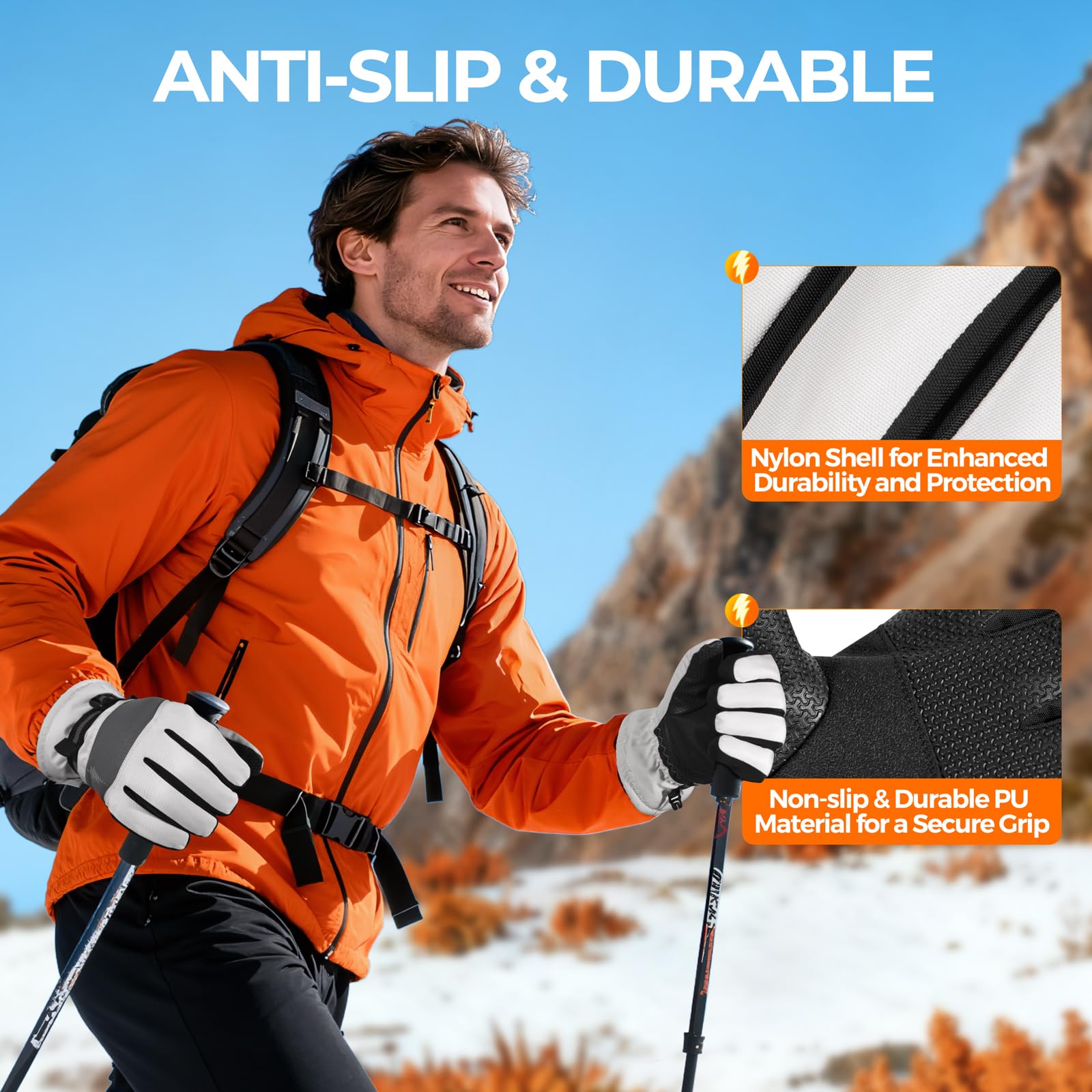 Non-slip & Durable: The palms of these ski gloves are crafted from anti-slip PU material, providing a secure grip on ski poles, tools, steering wheels, or other items. This wear-resistant gloves are built to be durable and can withstand daily work. Wear them whenever you need the precision of a bare hand combined with the protection, comfort, and durability of a reliable winter work gloves.