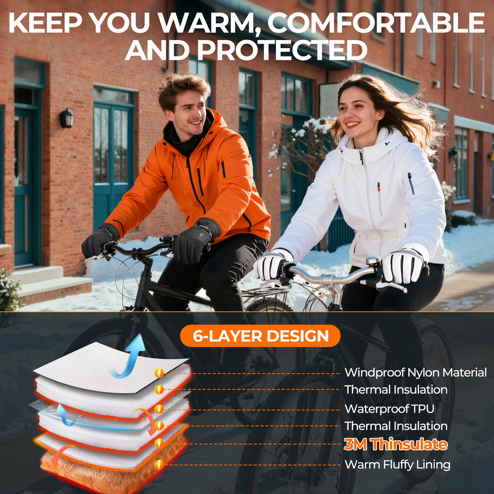 Waterproof & Windproof: These thermal gloves are built with a water-resistant and windproof outer shell and a waterproof TPU layer, working together to keep your hands dry during skiing, snowboarding, snowmobiling, or other winter activities. The elastic wrist cuff seals out snow and cold air for added protection. Imagine being able to work outdoors in the snow or enjoy long hours of skiing without ever worrying about cold, wet hands.