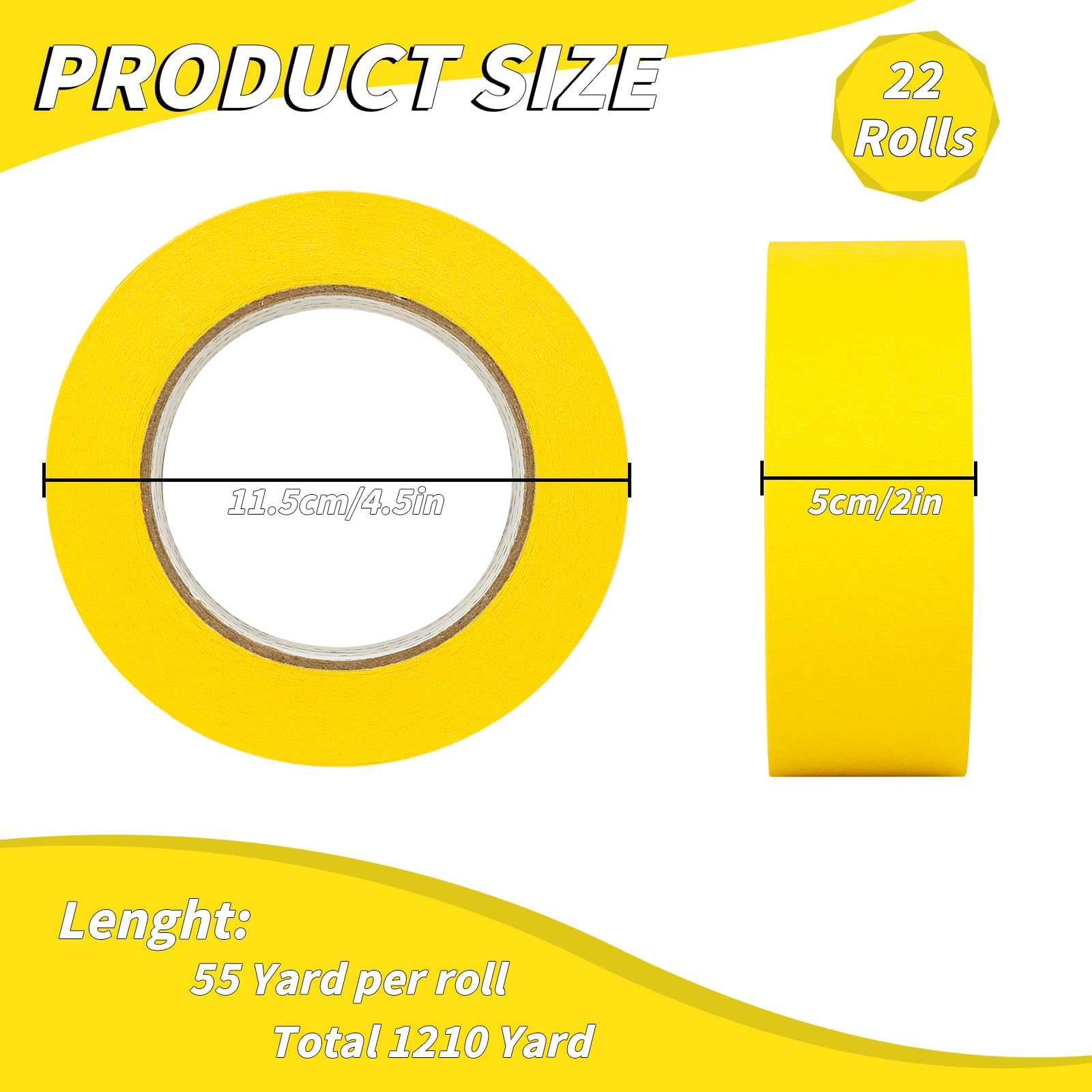 Yellow Masking Tape Bulk: you will get 22 rolls painters tapes, each measures 2 inch x 55 yards, 1210 yards in total, sufficient quantity and length to meet your various uses and DIY decoration needs, the Yellow painter's tape will help you create a nice edge in all types of painting, trimming, edging, masking and protective applications