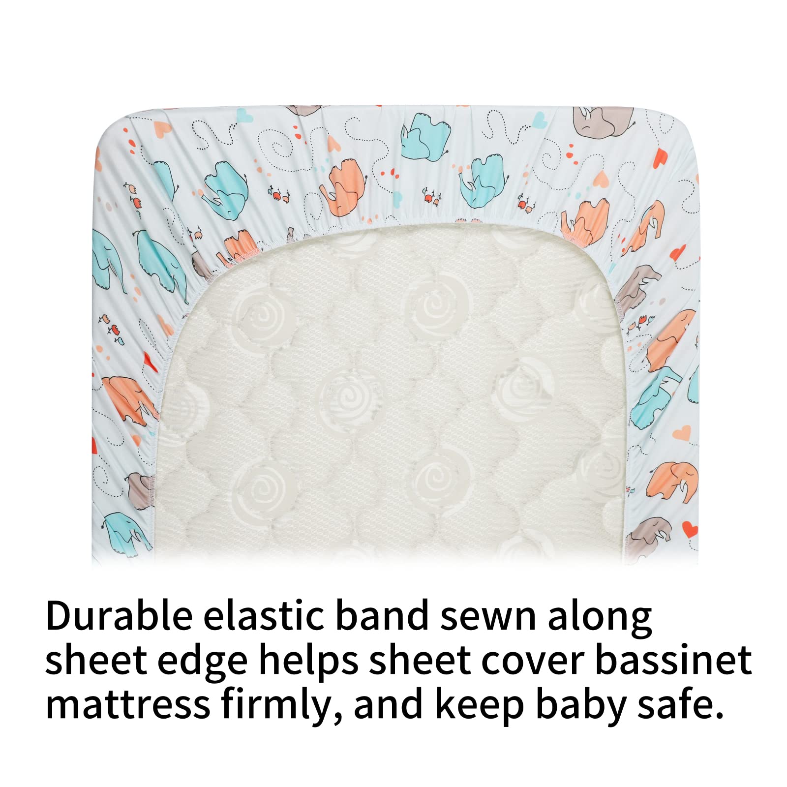 SKIN-FRIENDLY FABRIC: Made of premium knitted fabric, our bassinet sheets are soft, breathable and hypoallergenic, gentle on baby's delicate skin. It will provide super comfortable sleeping environment for your little one.