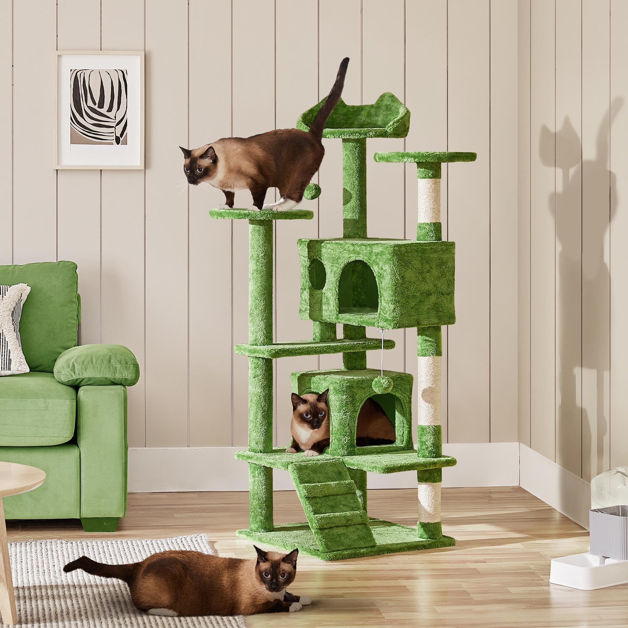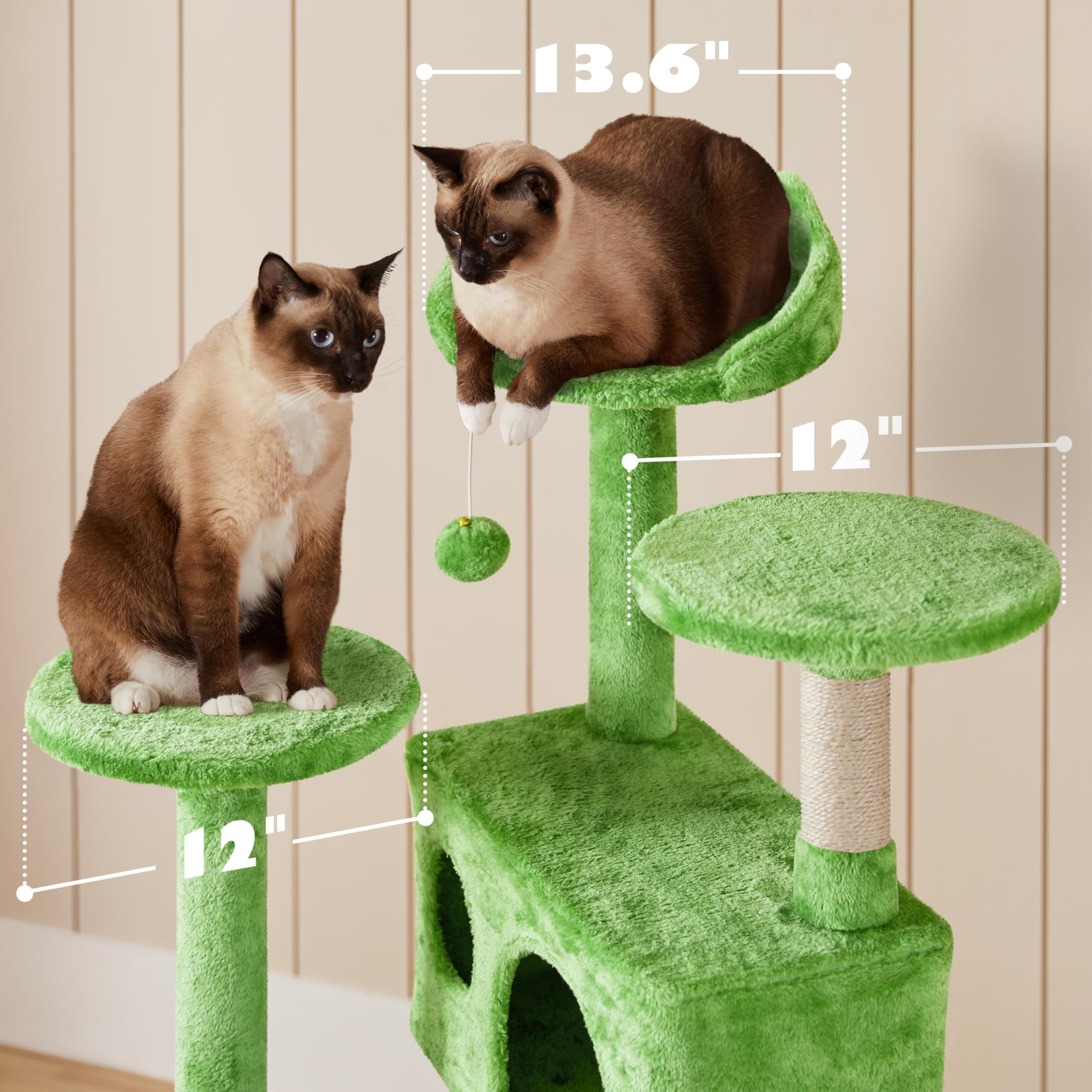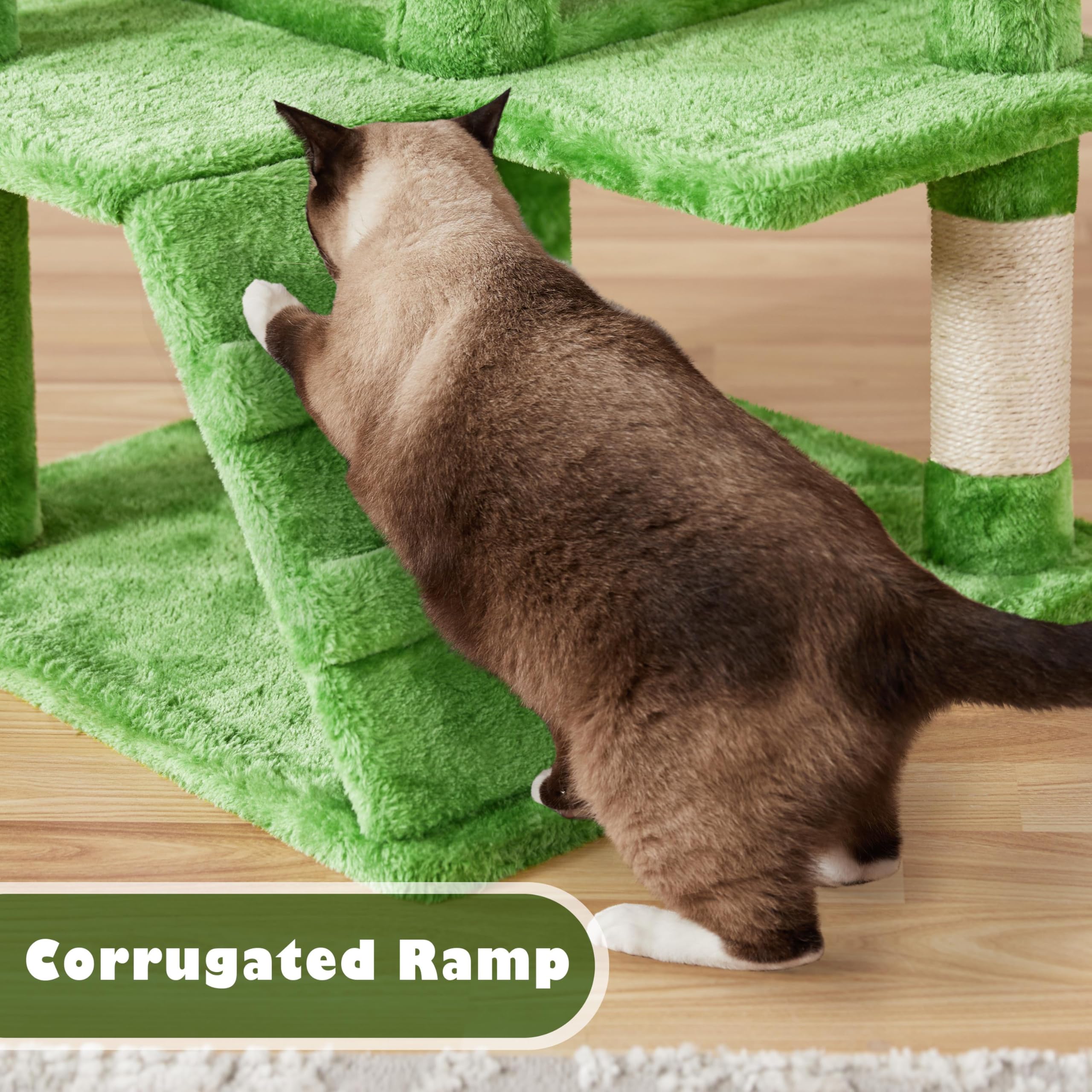 SELECTED MATERIALS FOR YOUR FURRY ROYALS: Premium CARB P2-compliant particle board is covered with soft plush, while the posts are coiled with natural sisal, this cat climbing frame provides both comfort and safety for your feline friends