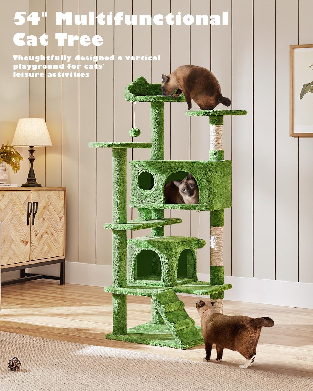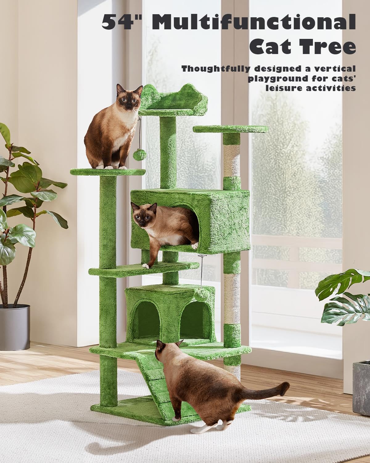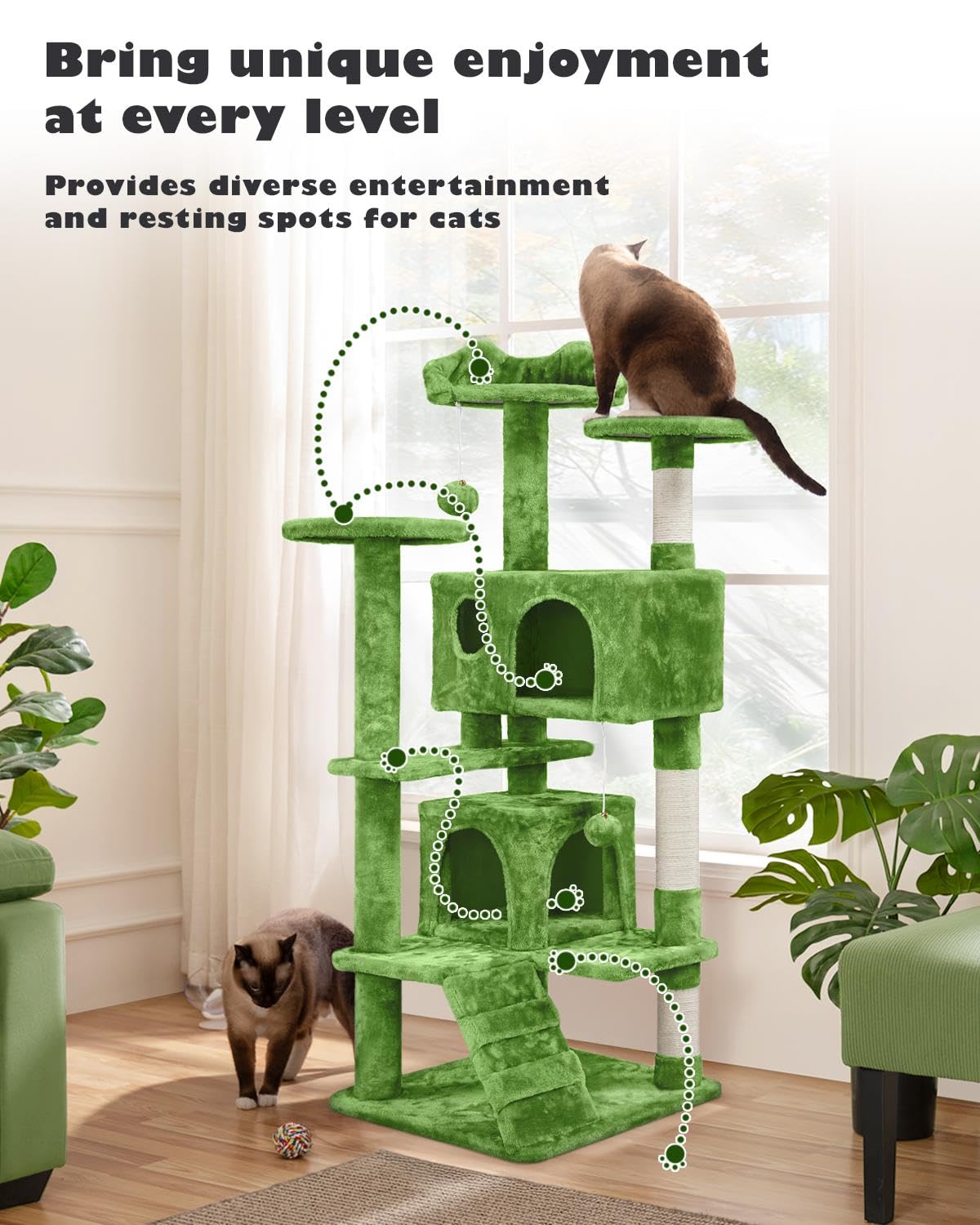 SELECTED MATERIALS FOR YOUR FURRY ROYALS: Premium CARB P2-compliant particle board is covered with soft plush, while the posts are coiled with natural sisal, this cat climbing frame provides both comfort and safety for your feline friends