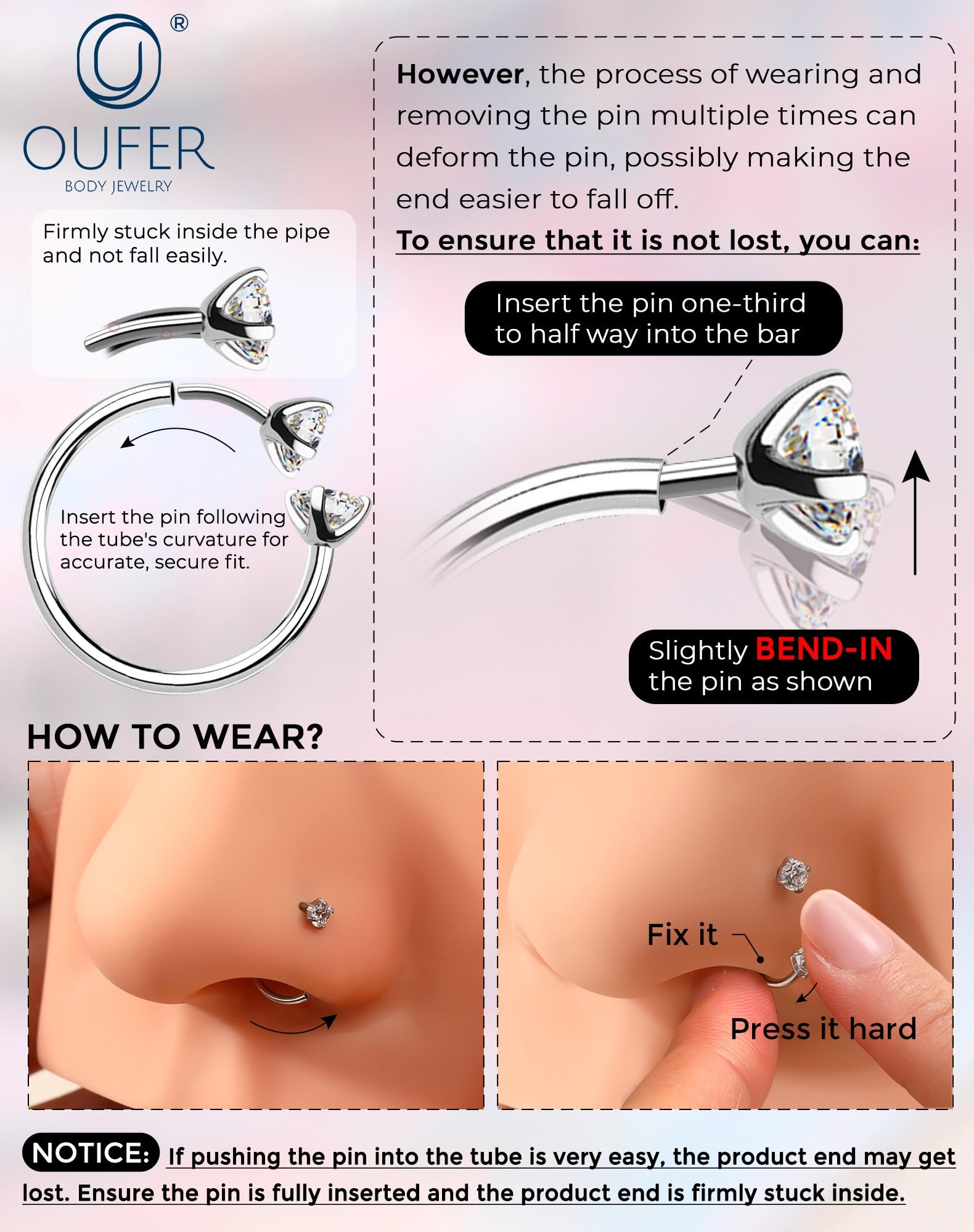 MATERIAL: The nose hoops is made from 316L surgical stainless steel, free of lead and nickel, hypoallergenic, making the nose piercing jewelry suitable for sensitive skin
