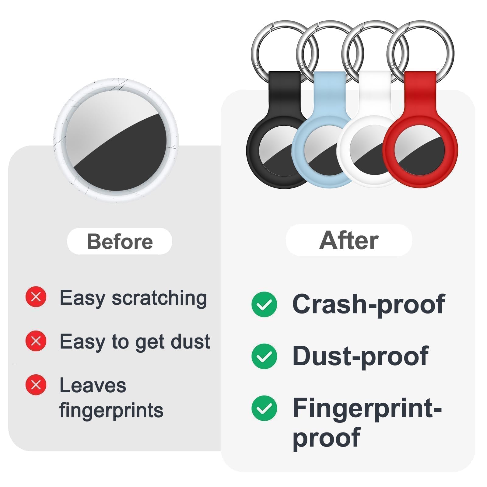 Compatibility:This silicone skin cover was specially designed for AirTag. Protect your for AirTag from shocks and scratches. (The for AirTag not included)