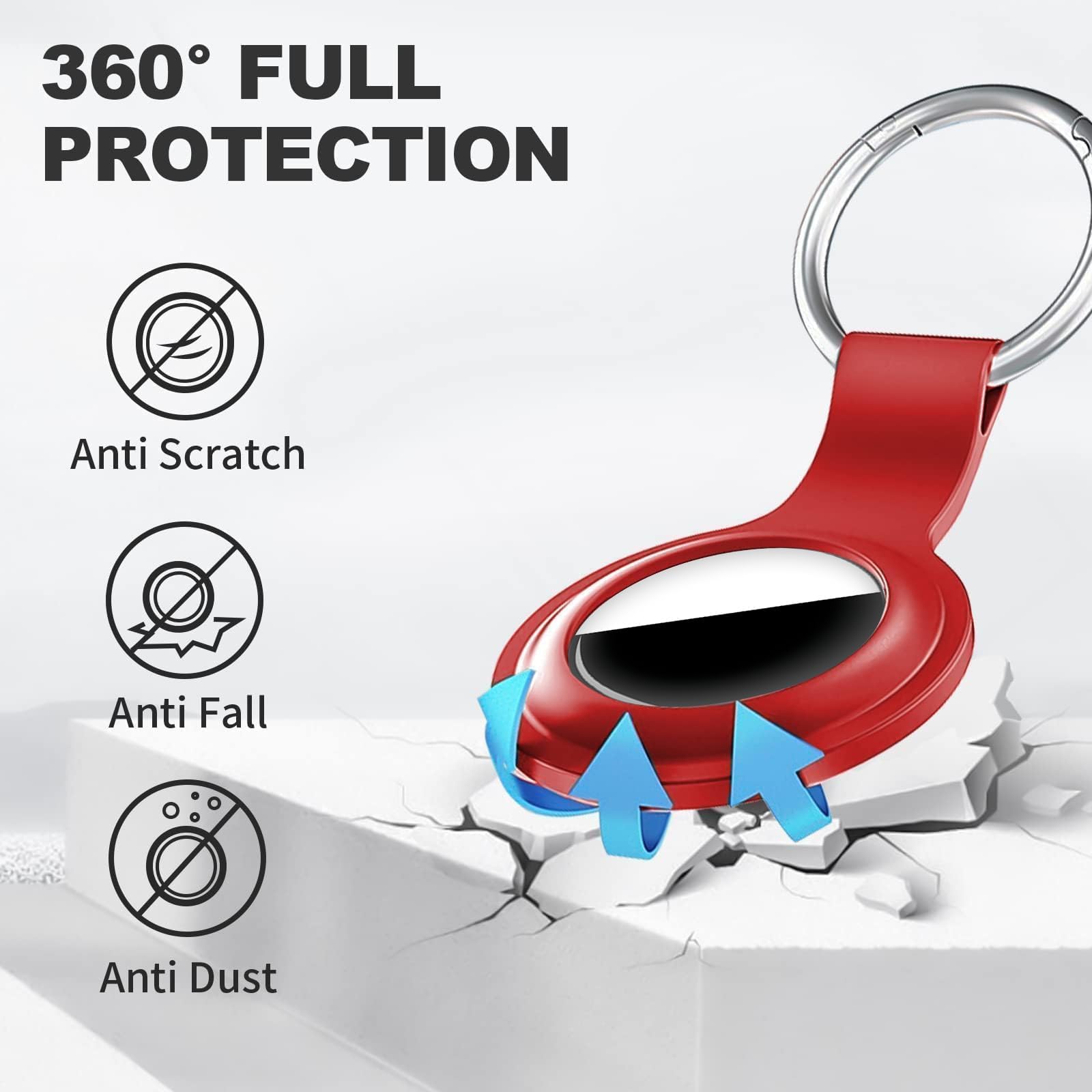 Shockproof Silicone Materia: The for AirTag holder is made of waterproof silicone material, which could provide a stronger buffer when bumps or drops to fully protect your for AirTag