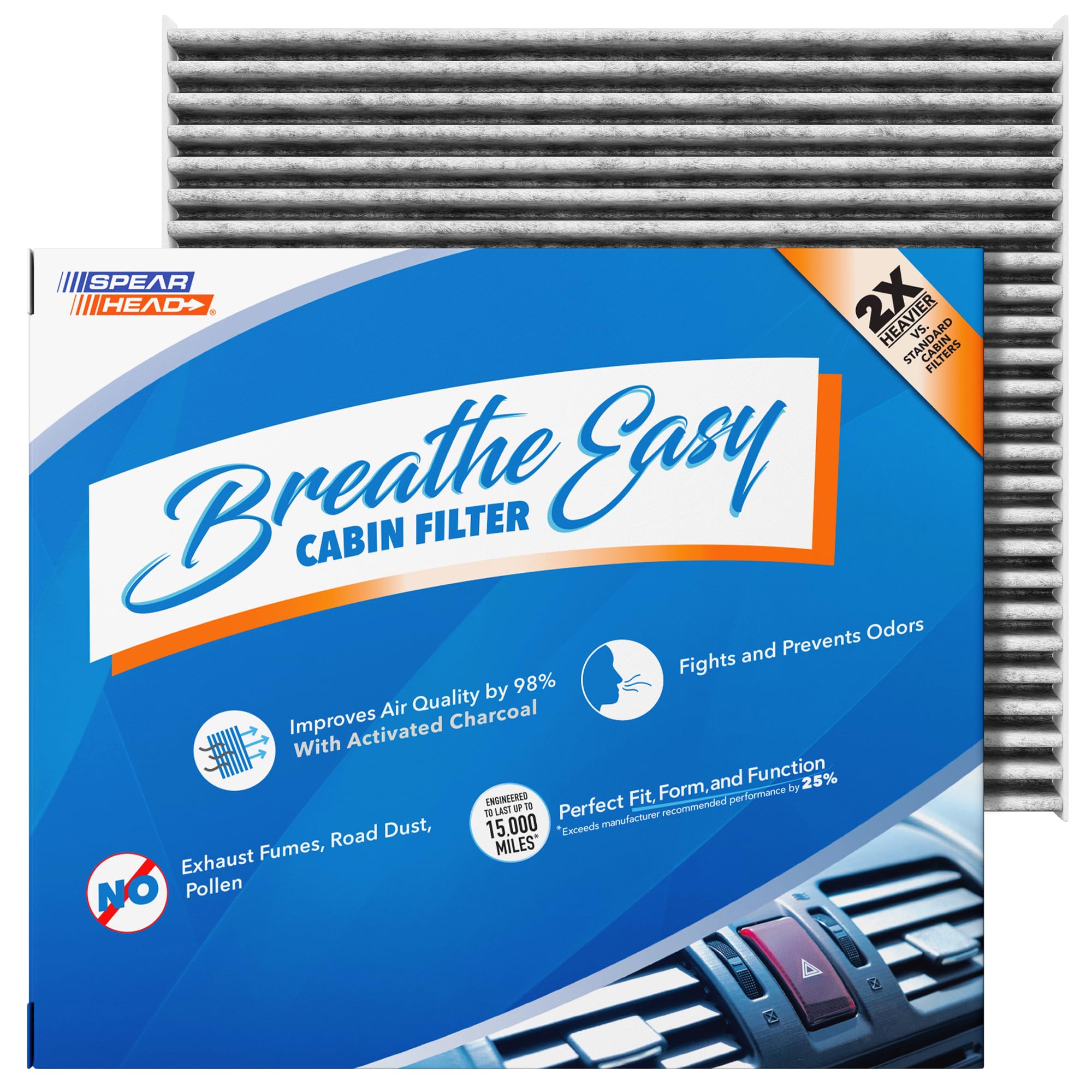 Up to 25% Longer Life: Precision woven and infused with real coconut shell activated carbon, our Breathe Easy cabin air filters are engineered to last up to 15,000 miles, 25% longer than the standard performance of 12,000 miles