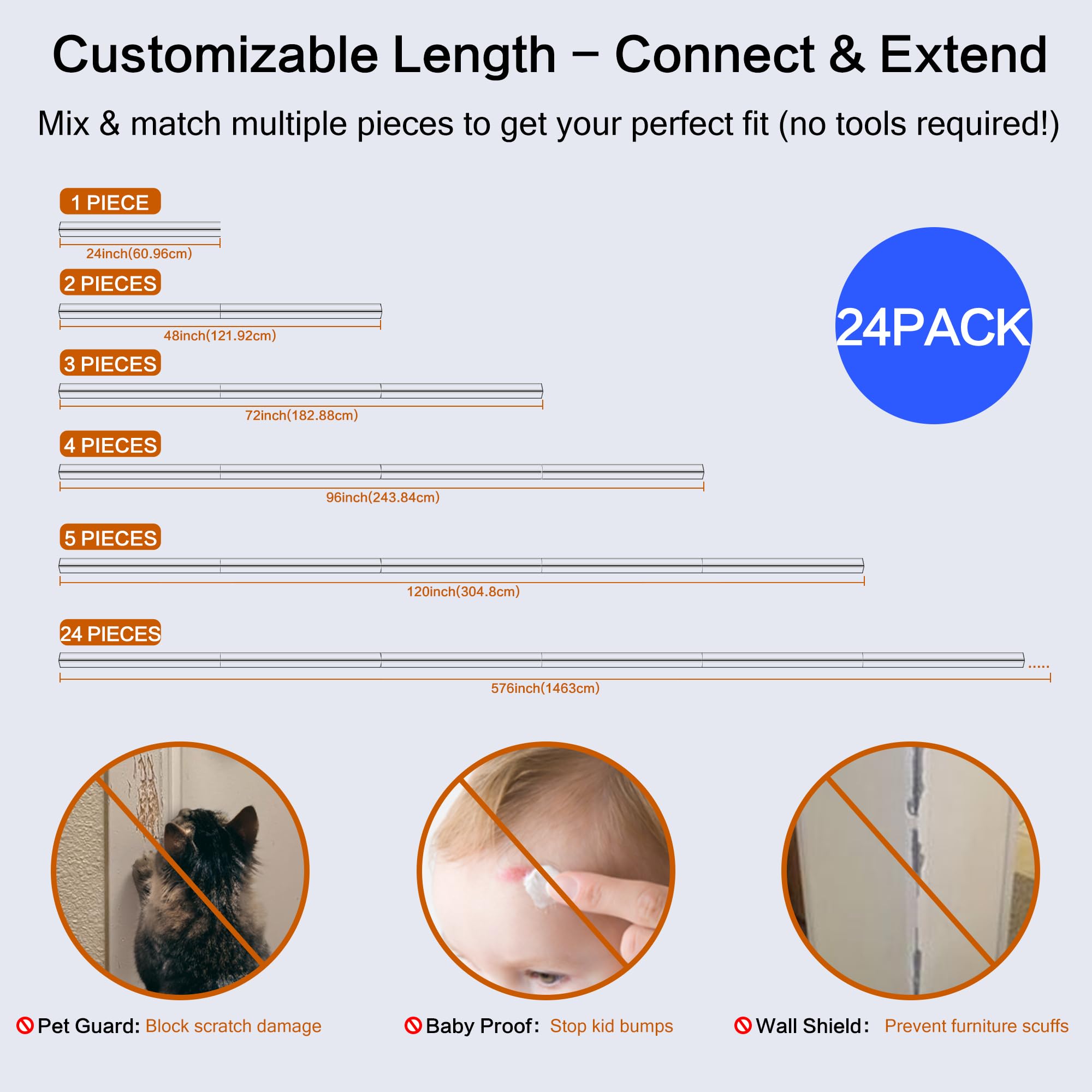 Package Includes:24PCS Clear Corner Protectors, 24” L x 1.0” W, 1.5mm Slim Thickness – Perfect for Baby Proofing & Furniture Safety