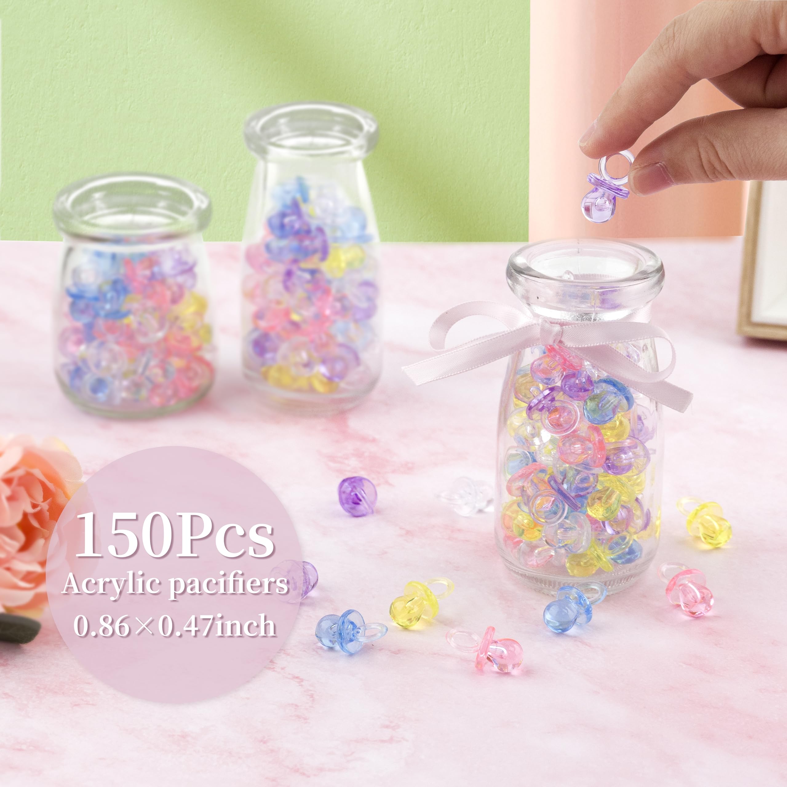 Colorful mini pacifiers - You will get 150 pcs mini baby shower pacifiers (30 pink, 30 blue, 30 purple, 30 clear, 30 yellow), the size of the mini pacifiers is 1/2 inch X 3/4 inch