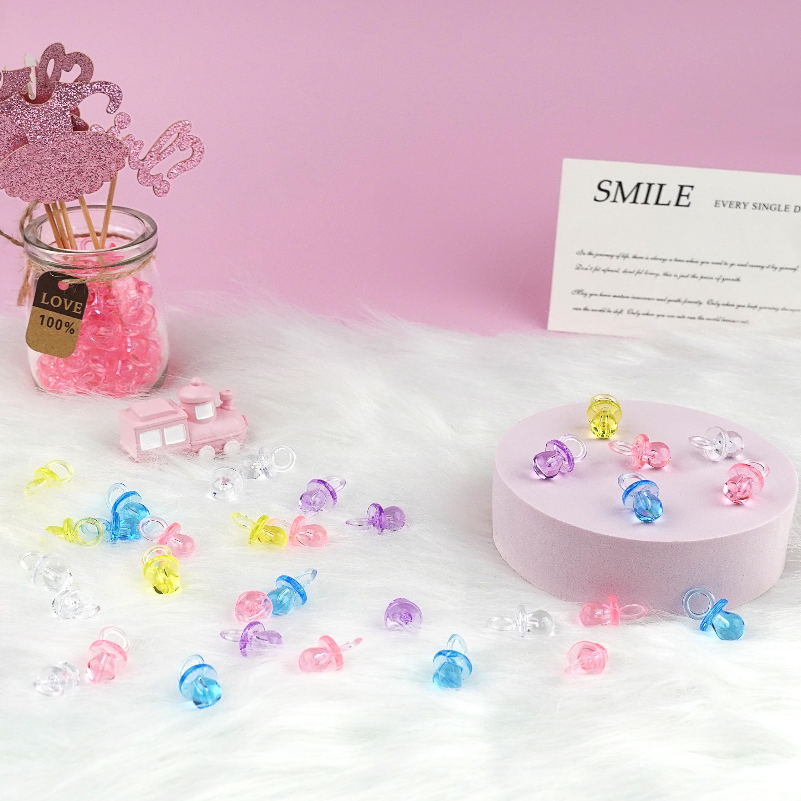 Reliable Acrylic Material - These pacifiers for baby shower game are made of high-quality acrylic material, which is smooth, durable, and odor-free. Safe to use as your table decoration or wear on your body