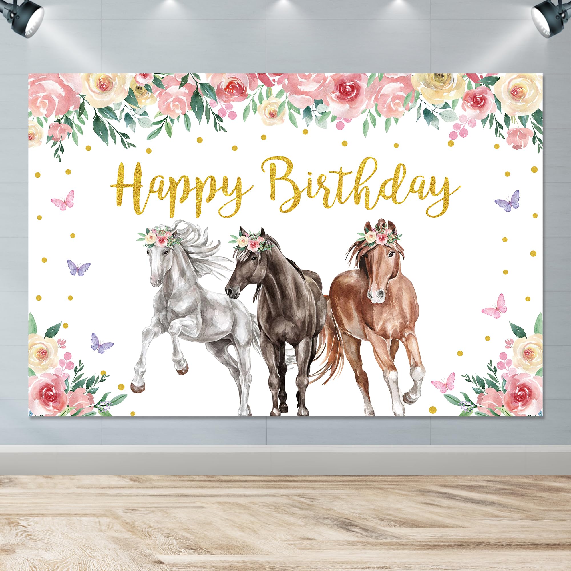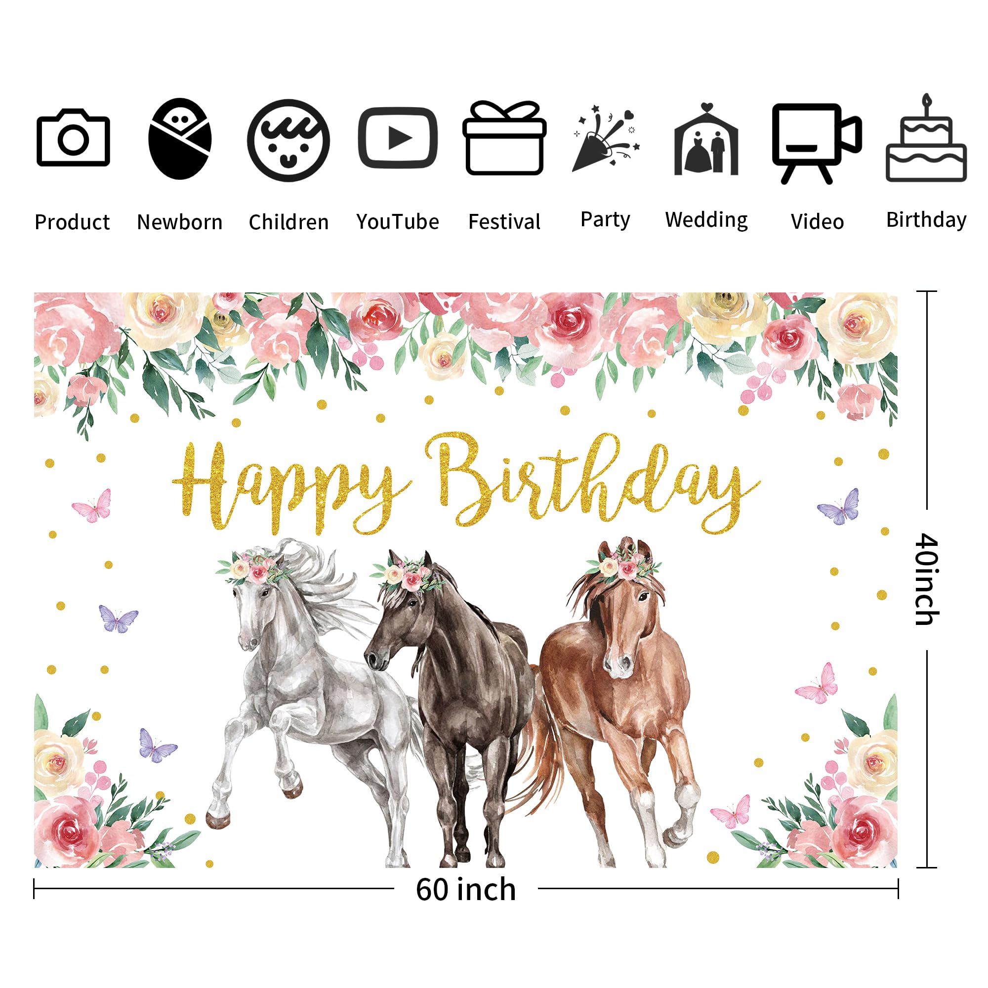 Rodeo Cowgirl Theme Horse Party Supplies Backdrop For Birthday Includes Includes: 1Pcs/set x Horse Birthday Party Backdrop Make your party unforgettable with our western cowgirl party supplies, and create a stunning backdrop, Let’s give a wonderful birthday party!