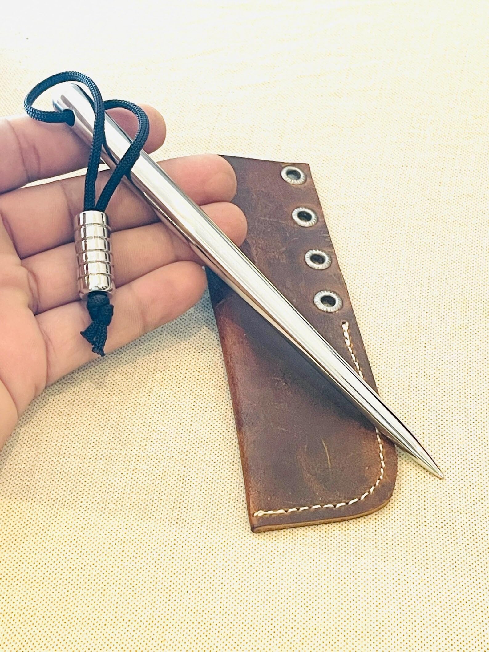 ✨ INCLUDES LEATHER PUNCH SHEATH: Brown leather sheath provides secure storage, portability, and protection while adding a classic nautical aesthetic