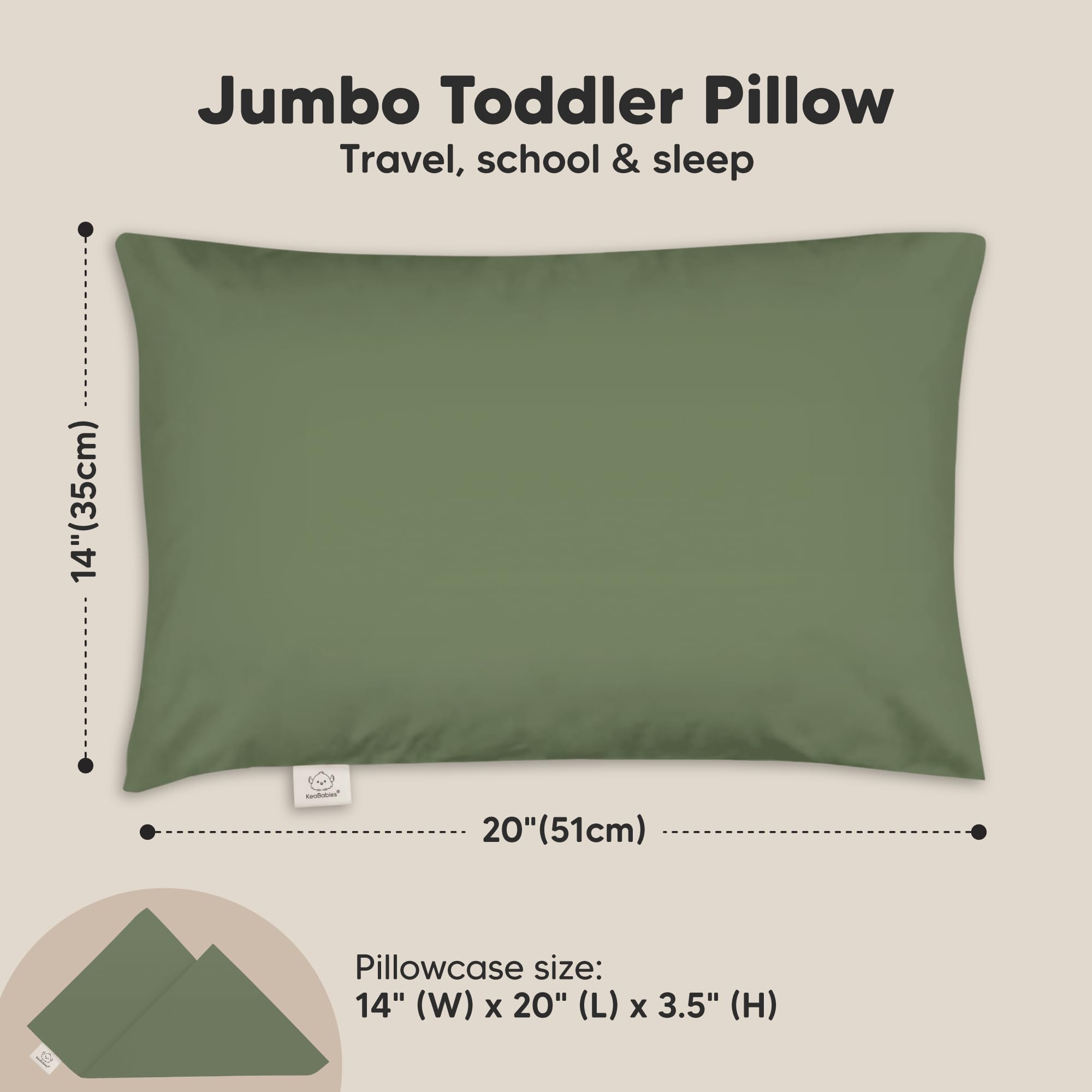Ergonomically Designed – KeaBabies Jumbo Toddler Pillow 14x20, offers ergonomic support for healthy spinal alignment and all-night comfort. Note: Simply cold wash and tumble dry low to restore its fluffiness after opening from vacuum package.