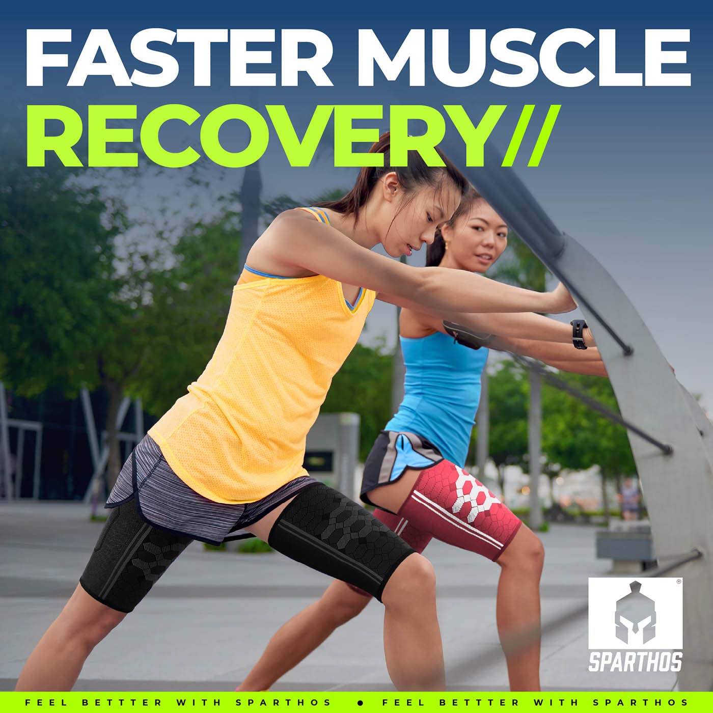 ✅ PAIN RELIEF AND FAST RECOVERY - Recommended by trainers and doctors, Sparthos thigh sleeves will provide relief from injuries around the thigh, hamstrings, quadriceps, and groin areas. Get through your day without pain and discomfort.