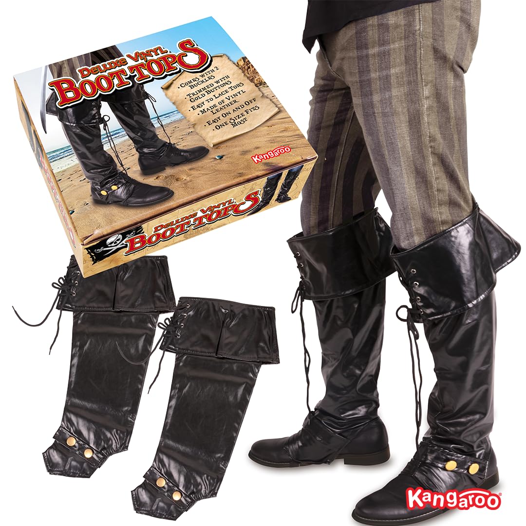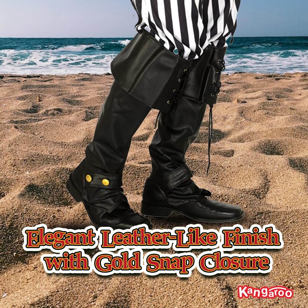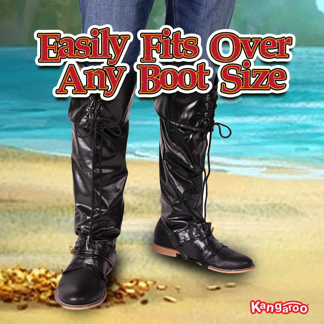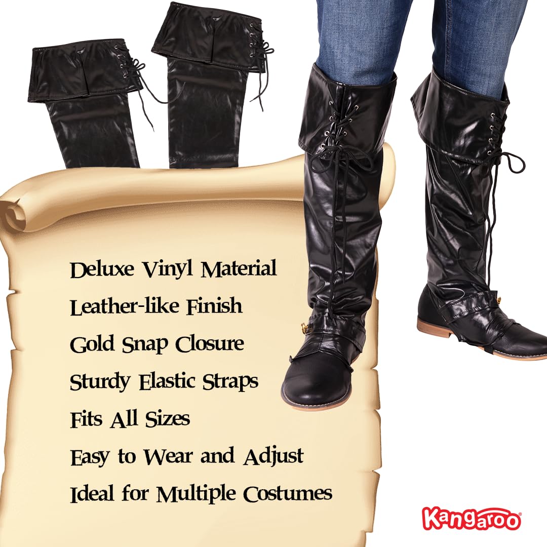 Package Includes 1 Pair Black Pirate Boot Covers One Size Fits Most Adults & Teens, Perfect as a Giftable Accessory for Halloween and Cosplay Lovers