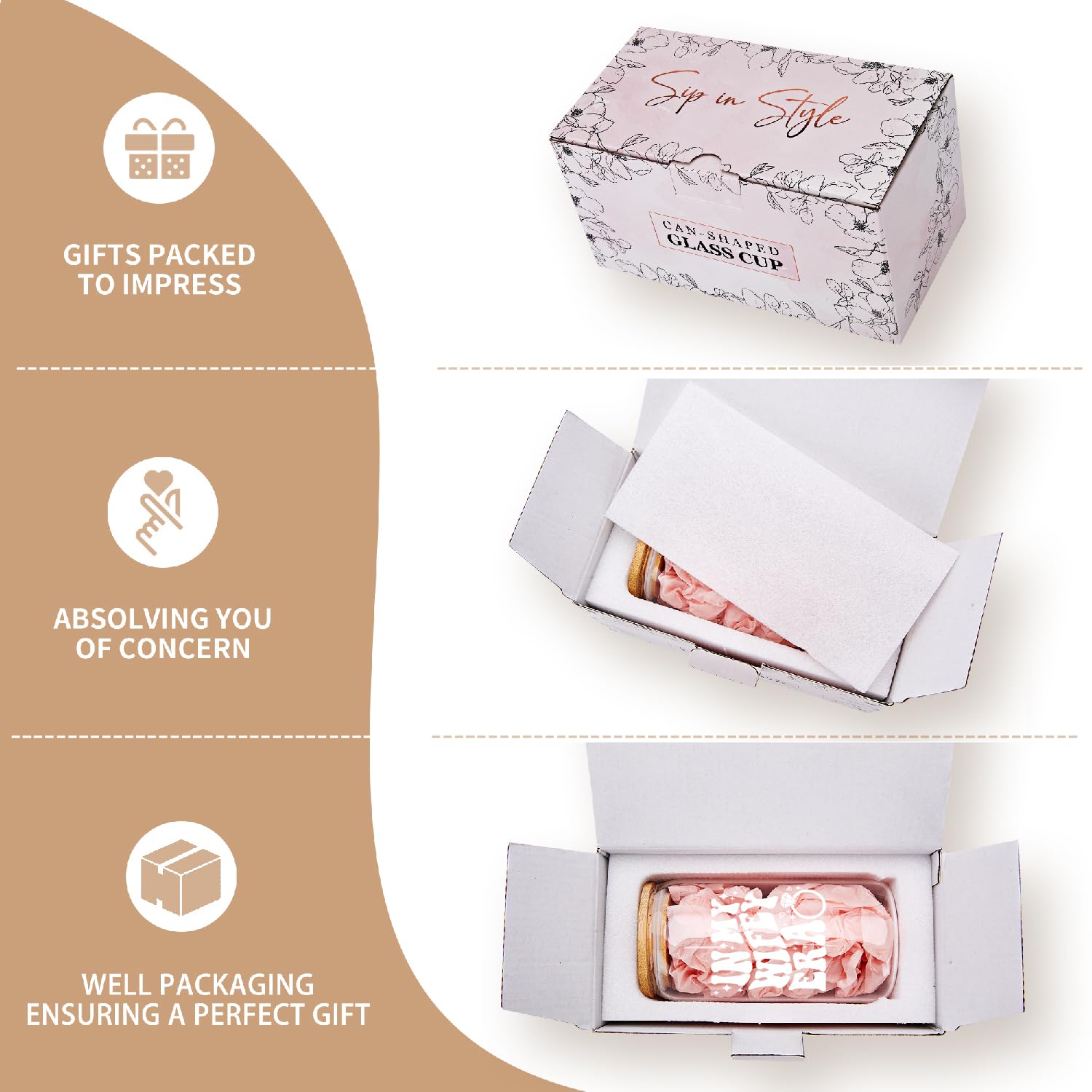 ELEGANT AND SECURE PACKAGING - The glass tumbler arrives with pink tissue paper inside, adding a charming touch when unwrapped. An attractive gift box makes it ready for gifting, and sturdy packaging ensures the tumbler remains intact for a delightful presentation.