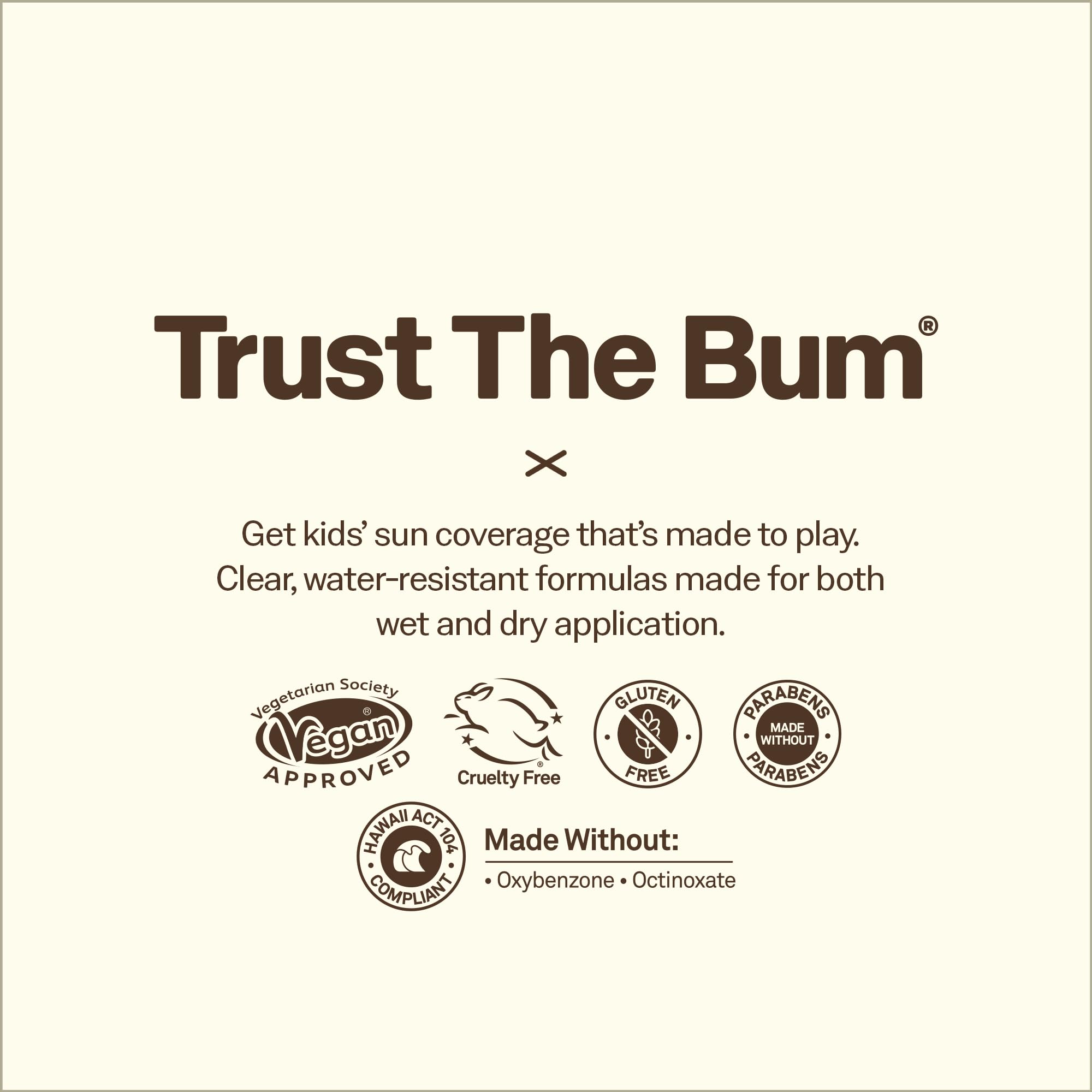 TRUST THE BUM. For All Skin Types, Broad Spectrum Protection, Dermatologist Tested, Paraben Free, Vegan, Cruelty Free, Hawaii 104 Reef Act Compliant
