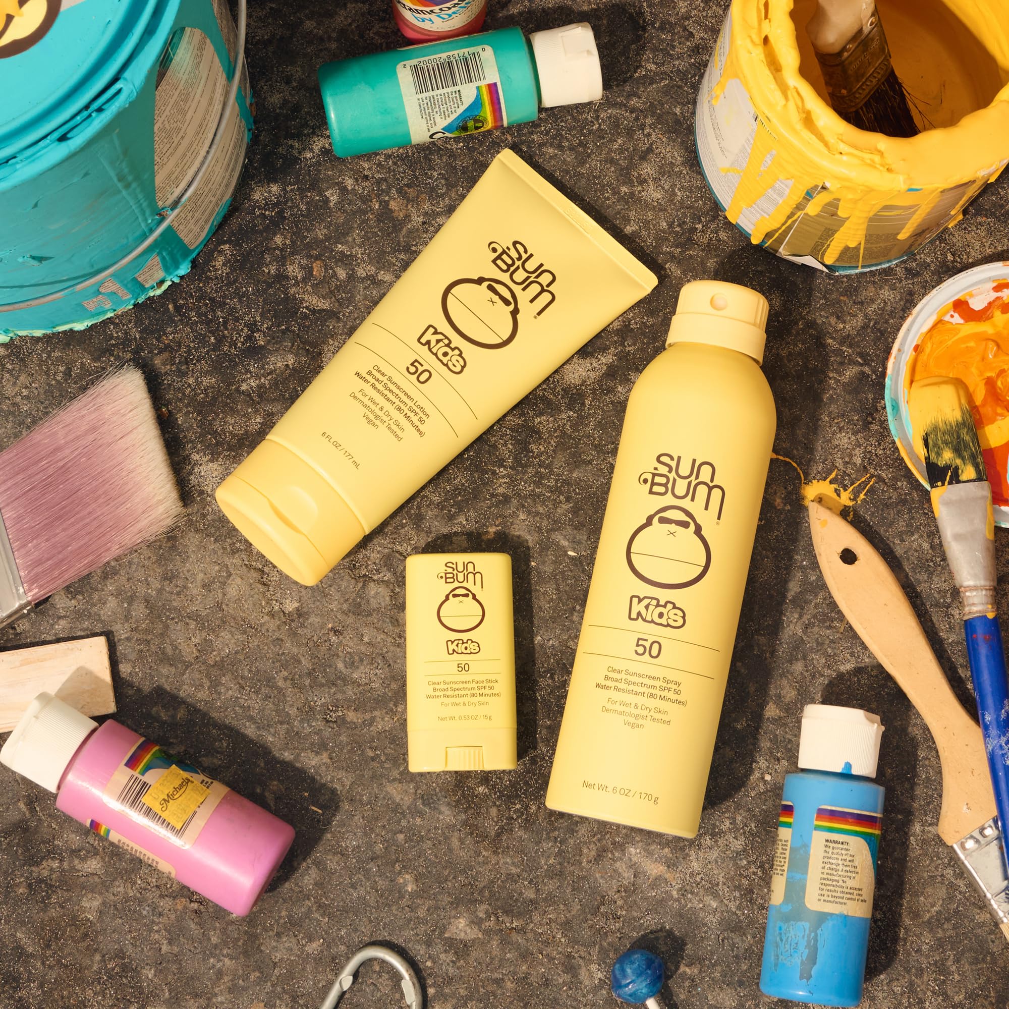 SUN BUM KIDS COLLECTION: Kids rule. So, we made a sunscreen just for them. Our Kids sunscreen collection features a clear, water-resistant formula that's made to apply easily to both wet and dry skin.