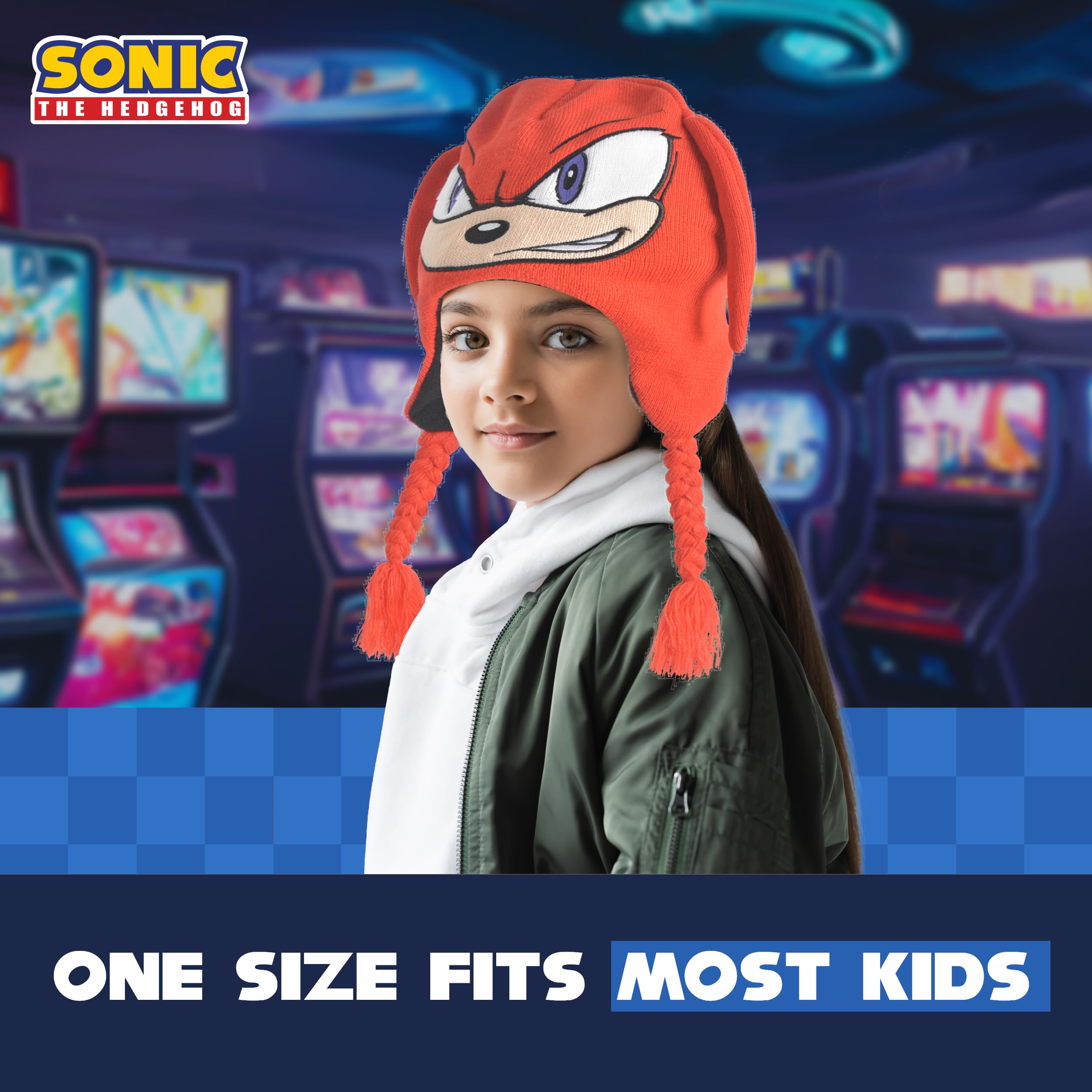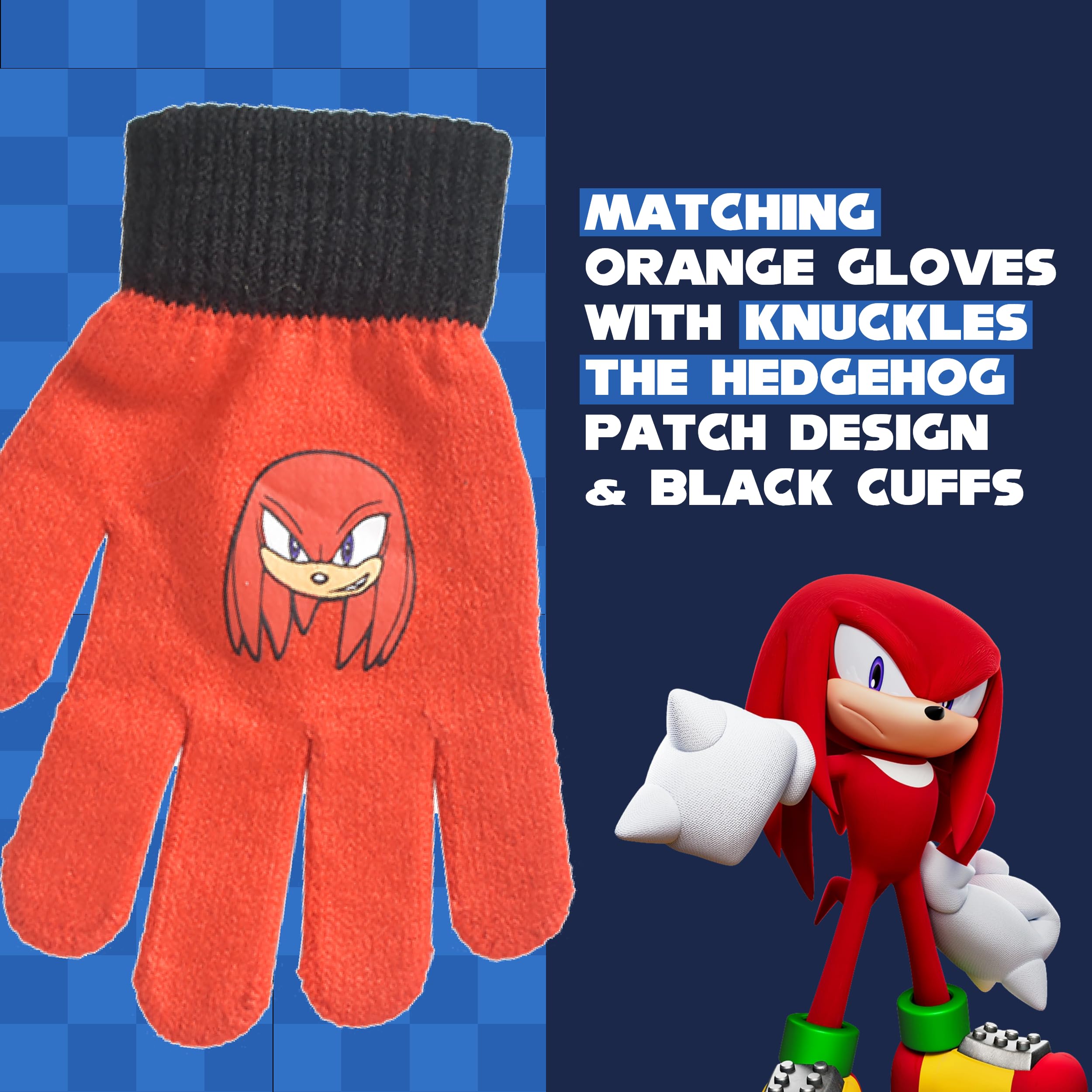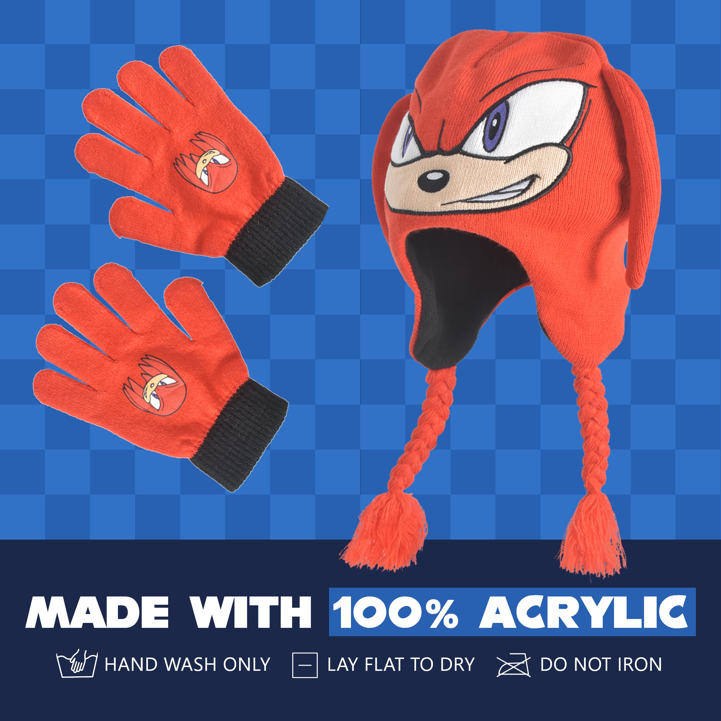 KNUCKLES KIDS BEANIE AND GLOVES SET: This cool and stylish Sonic Knuckles Peruvian knit beanie hat features a cute Knuckles face design with 3D quills and tassles, and the matching gloves feature resembles the face of Sonic's friend Knuckles from the big hit SEGA video game series, and feature matching red gloves, making them perfect as everyday wear for fans of the gamer in your life