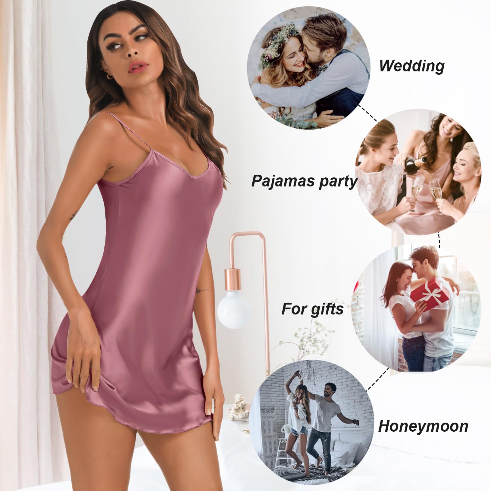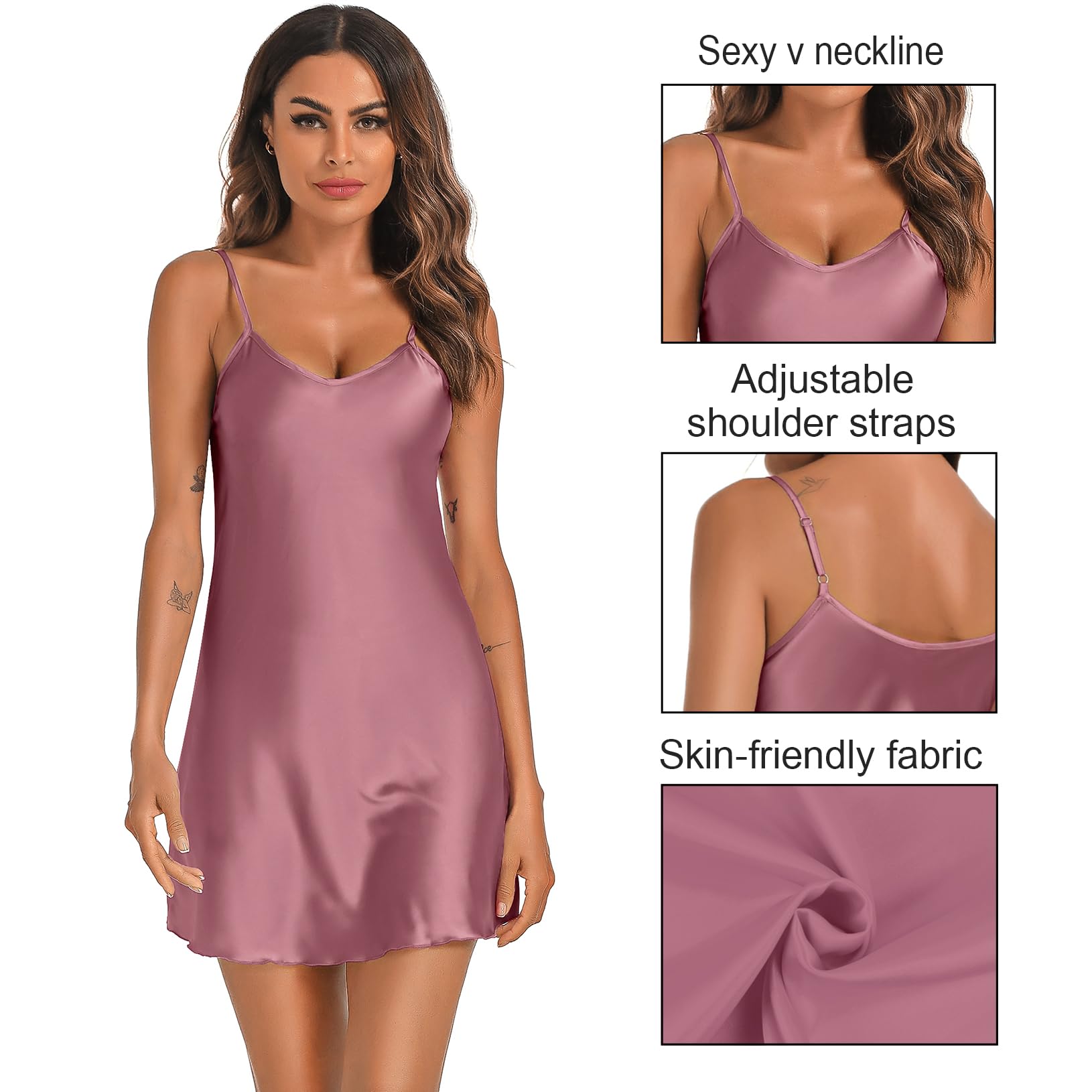 The satin nightgown /silk slip dress/sexy lingerie/nighty for women is buttery smooth with a feather-light drape and flow soft and snug to against your skin, perfect for sleepwear, nightwear, loungewear, honeymoon, casual wear, pajama party, and Halloween costume