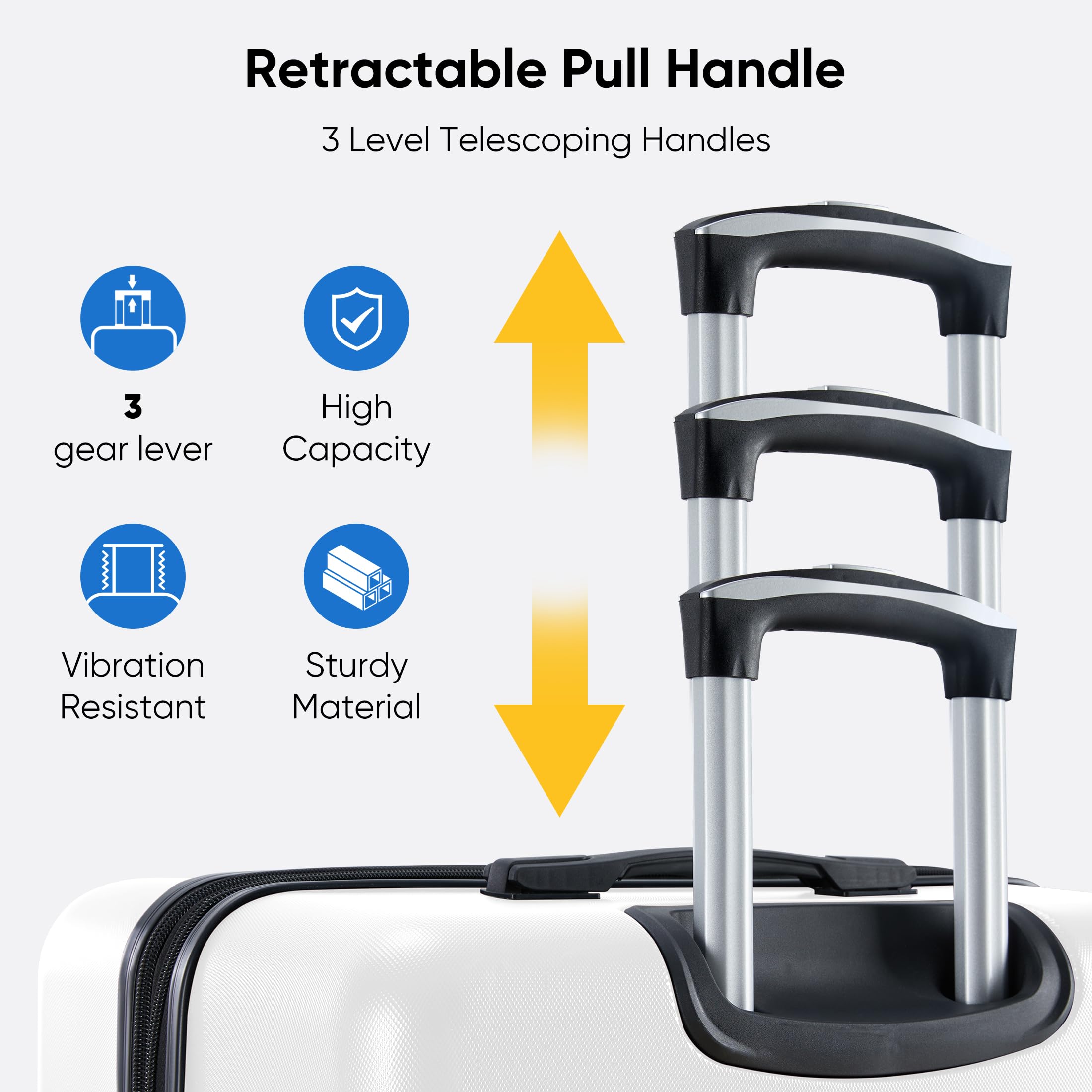 Durable & Scratch-Resistant: Made from high-quality ABS hard shell, this suitcase is impact-resistant, lightweight, and built to withstand travel wear and tear. The reinforced aluminum telescopic handle is sturdy and resistant to bending, ensuring long-lasting durability.