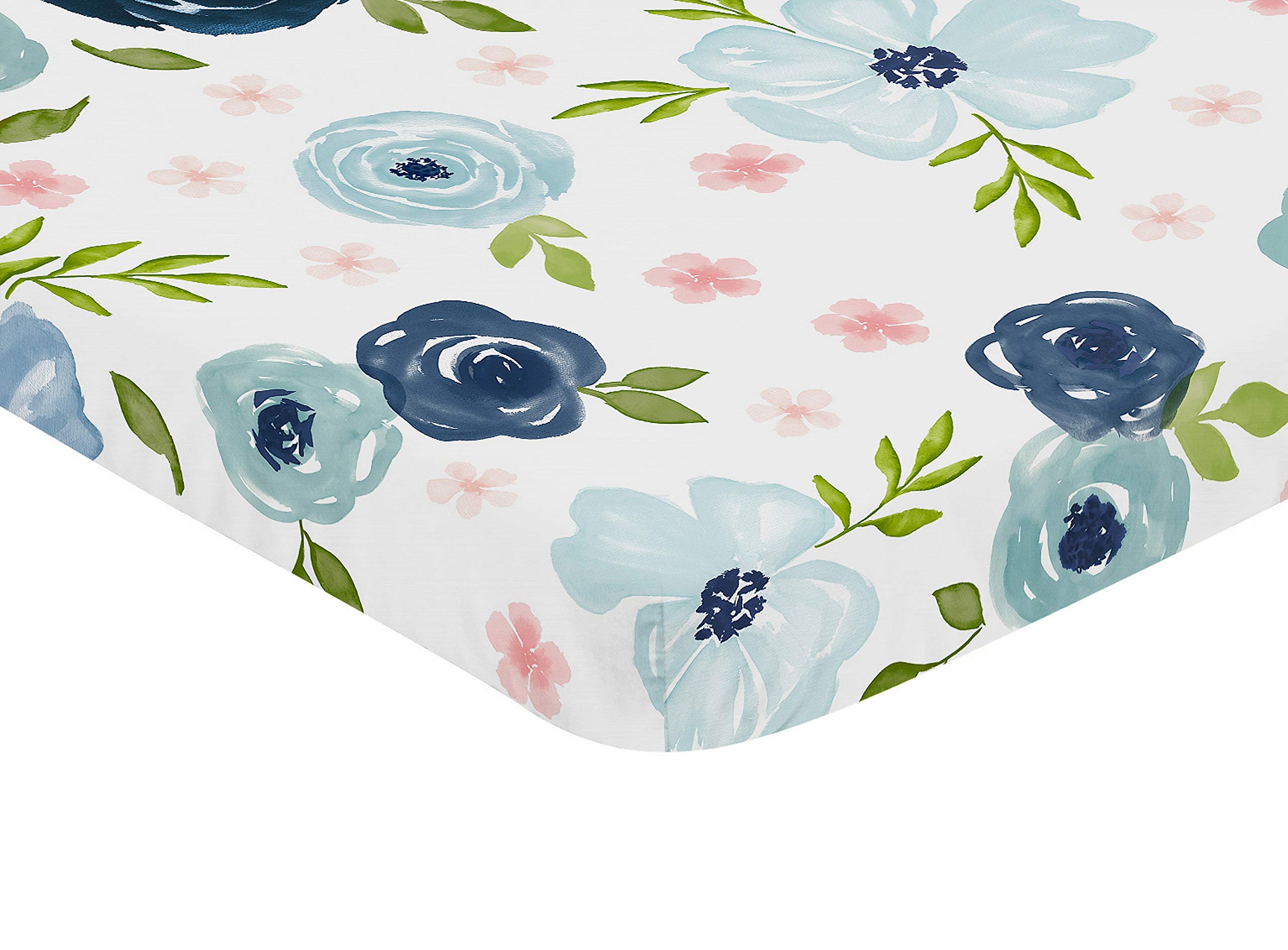 Brushed Microfiber - Navy Blue and Blush Pink Watercolor Floral Print