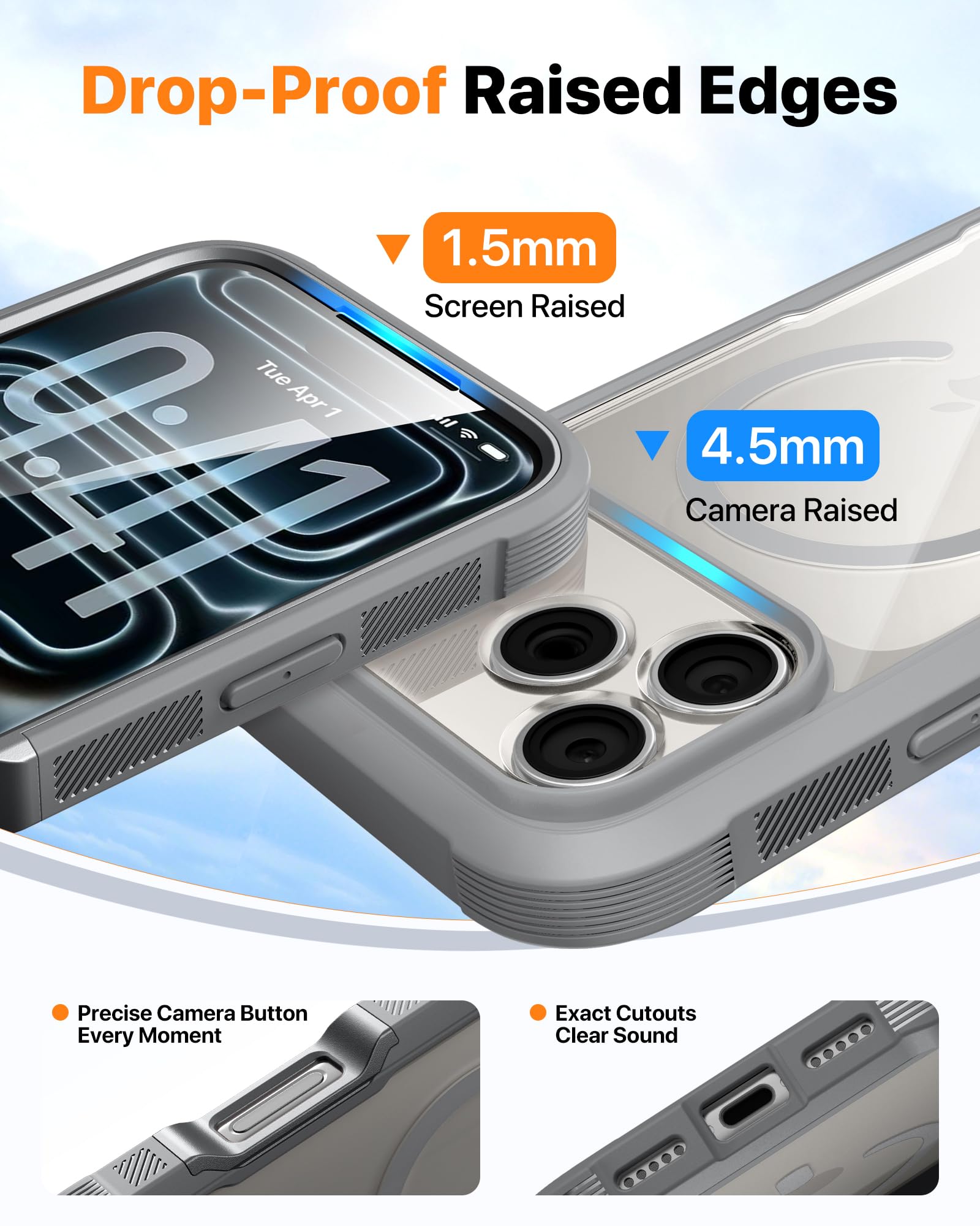 【Built-in screen protector】Diaclara clear designed for iphone 17 pro max case with built-in touch sensitive and anti-scratch screen protector, protect the fragile glass from scratches and cracks.