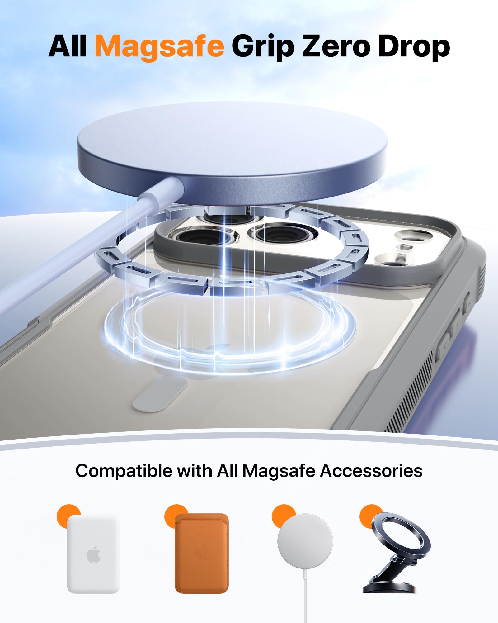 【Fit All Magnet Accessories】 Built in 2025 upgraded generation magnet ring, locking and compatible with magsafe accessories, wireless charging is faster, easier, and safer. Works 100% with wireless charging pad, don't need to remove the case.