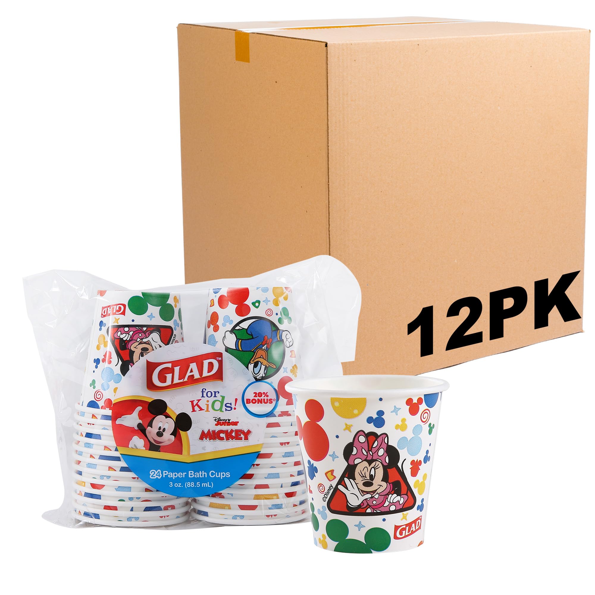 Glad for Kids believes in bringing a little fun to your everyday routine! So, when it’s time to rinse and swish, why not invite your family’s favorite characters and colors to the sink? Disney Mickey and Friends Mini Paper Bathroom Cups are the perfect kid-friendly size, measuring just 2.25 inches tall and holding 3 ounces of fluid. And because they’re from Glad for Kids, parents can trust that they are soak-proof and sturdy. Each pack contains 24 mini paper cups adorned with vibrant designs of Mickey Mouse, Minnie Mouse, Donald Duck, Daisy, Goofy, and Pluto, bringing a touch of fun to every rinse. These bathroom paper cups are specifically designed for rinsing the mouth after brushing teeth or using mouthwash. Made for daily use, they're disposable for effortless cleanup, ensuring a hygienic experience every time. Not just for daily use, these mouth rinse cups are also perfect for parties, sleepovers, or any occasion where a sprinkle of fun is desired. Make oral hygiene fun and captivating for your child with Disney Mickey and Friends Mouth Rinse Cups. Whether for daily use or special occasions, these mini paper cups add charm and convenience to every rinse.