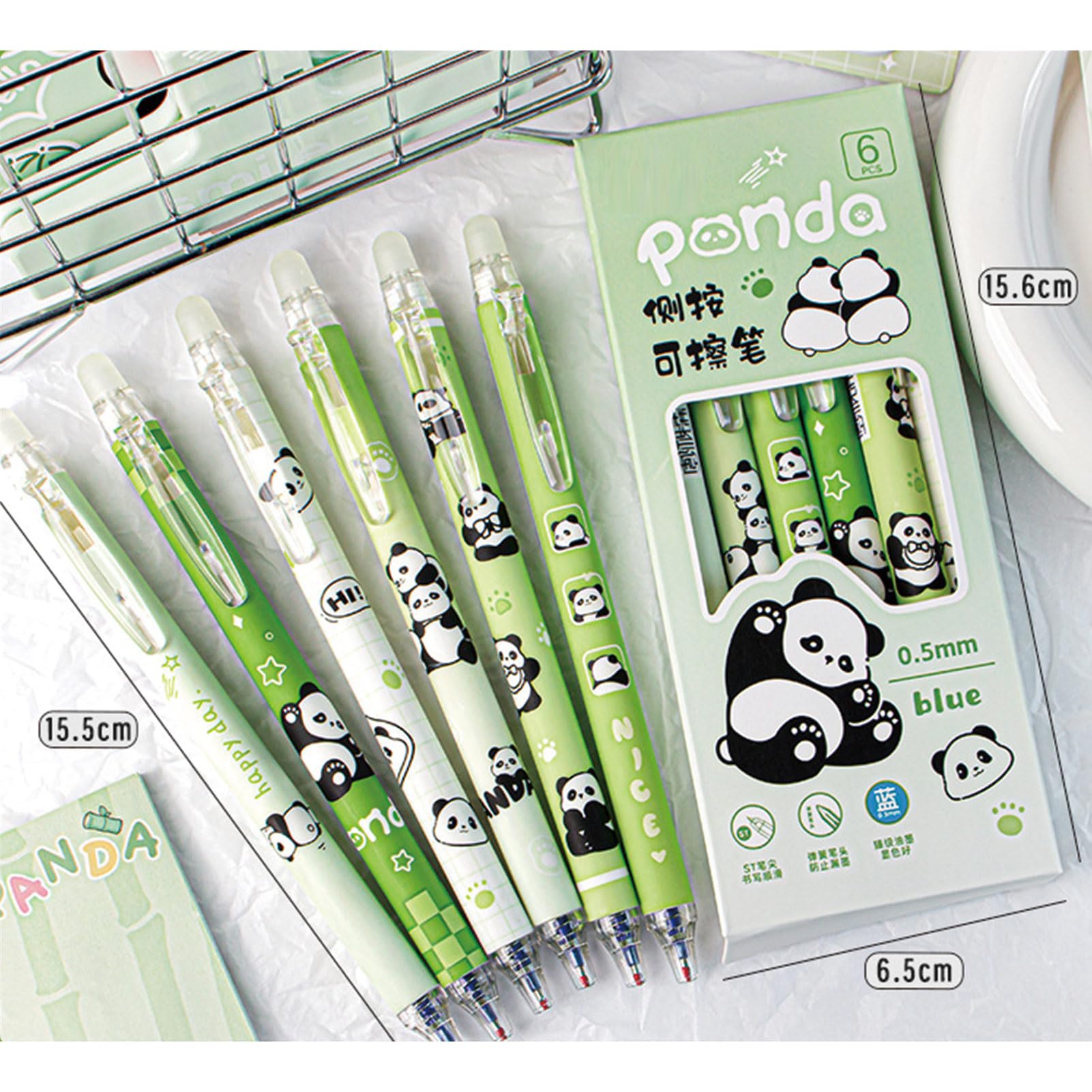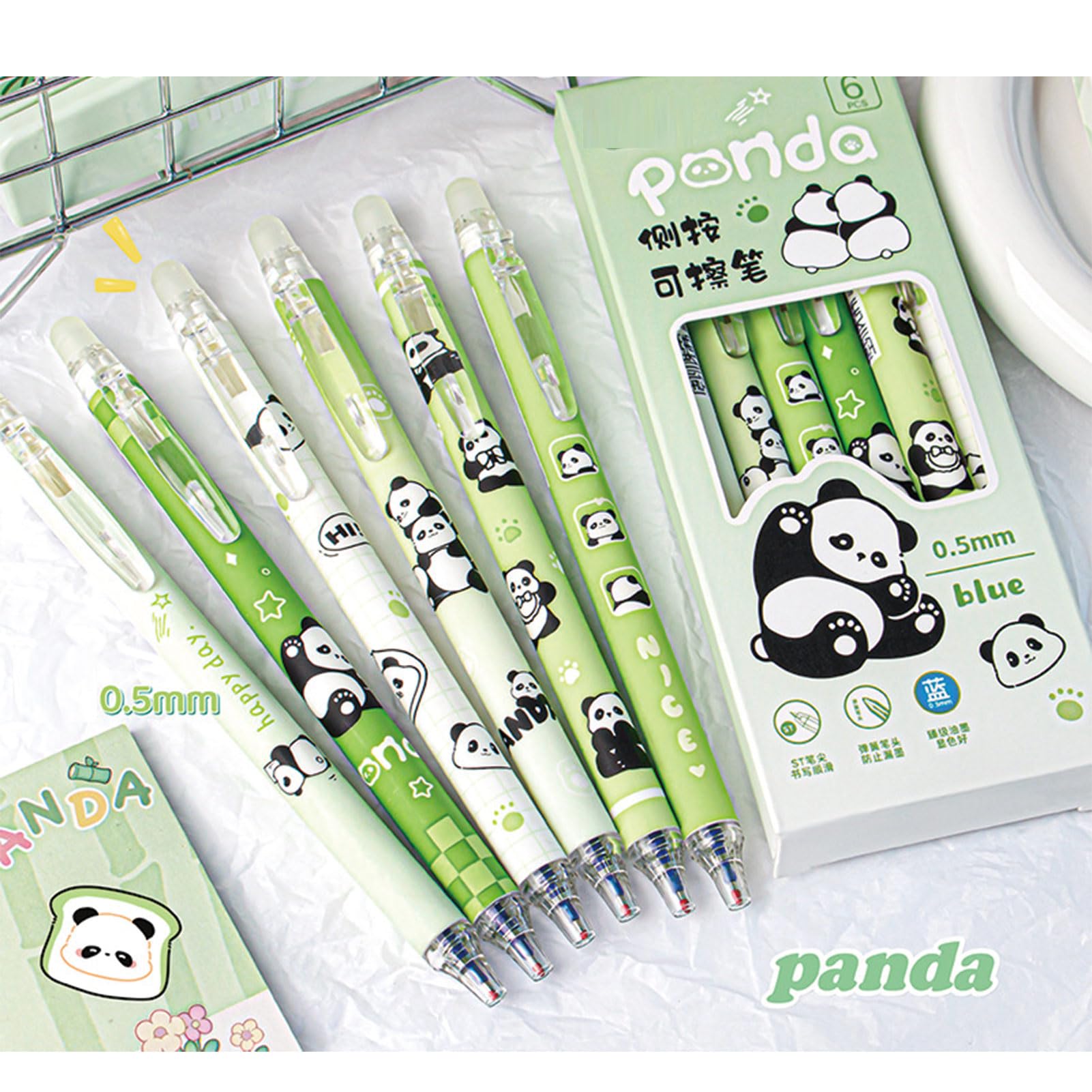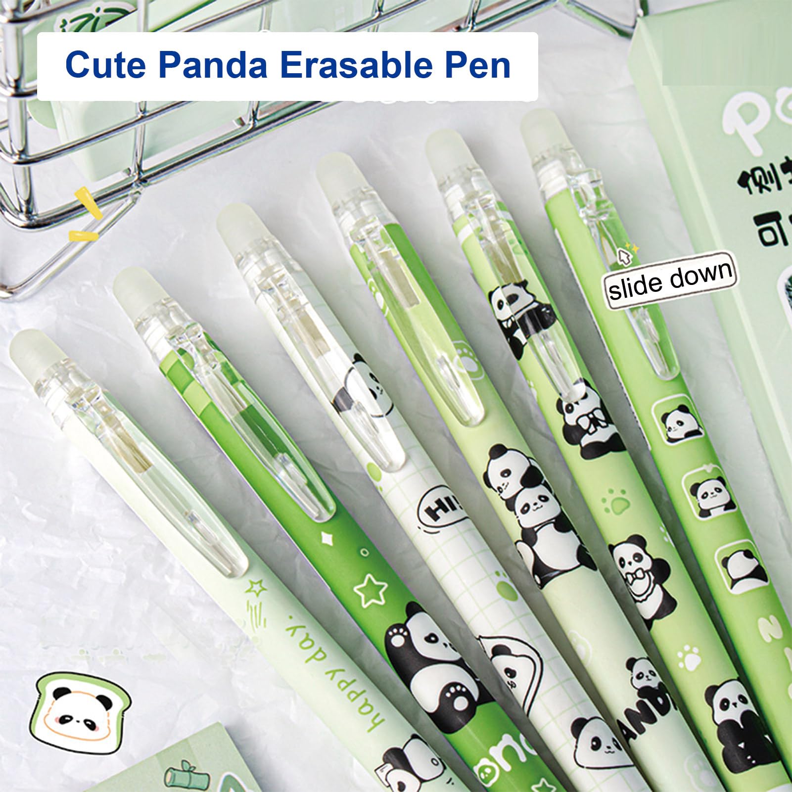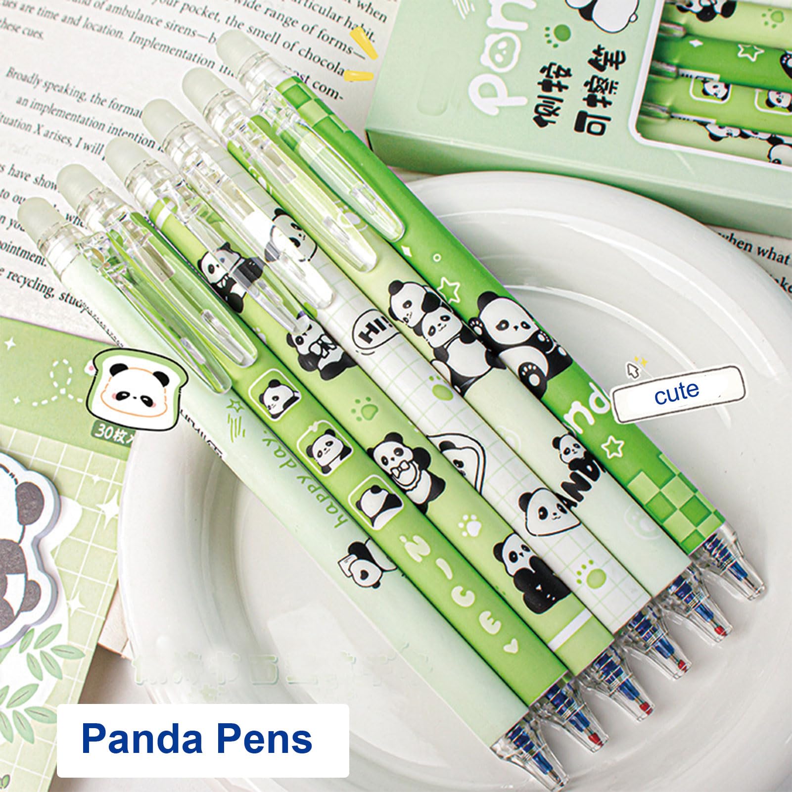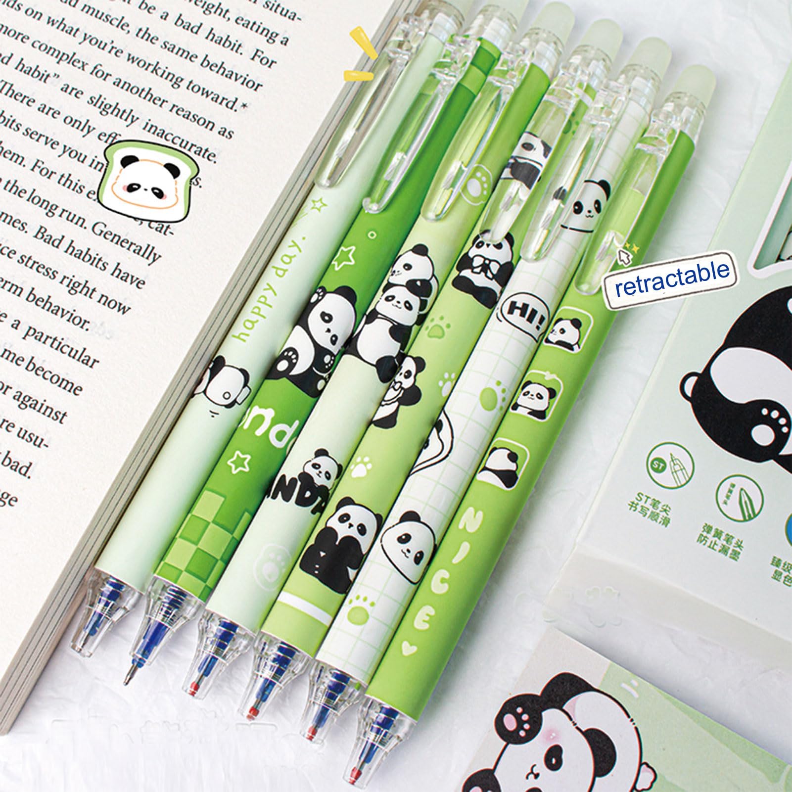 Cute Panda Retractable Pen: The cute gel ink pens are made of plastic material, 6 pieces pens with different cute cartoon panda patterns, so cute, perfect pens for women girls boys.