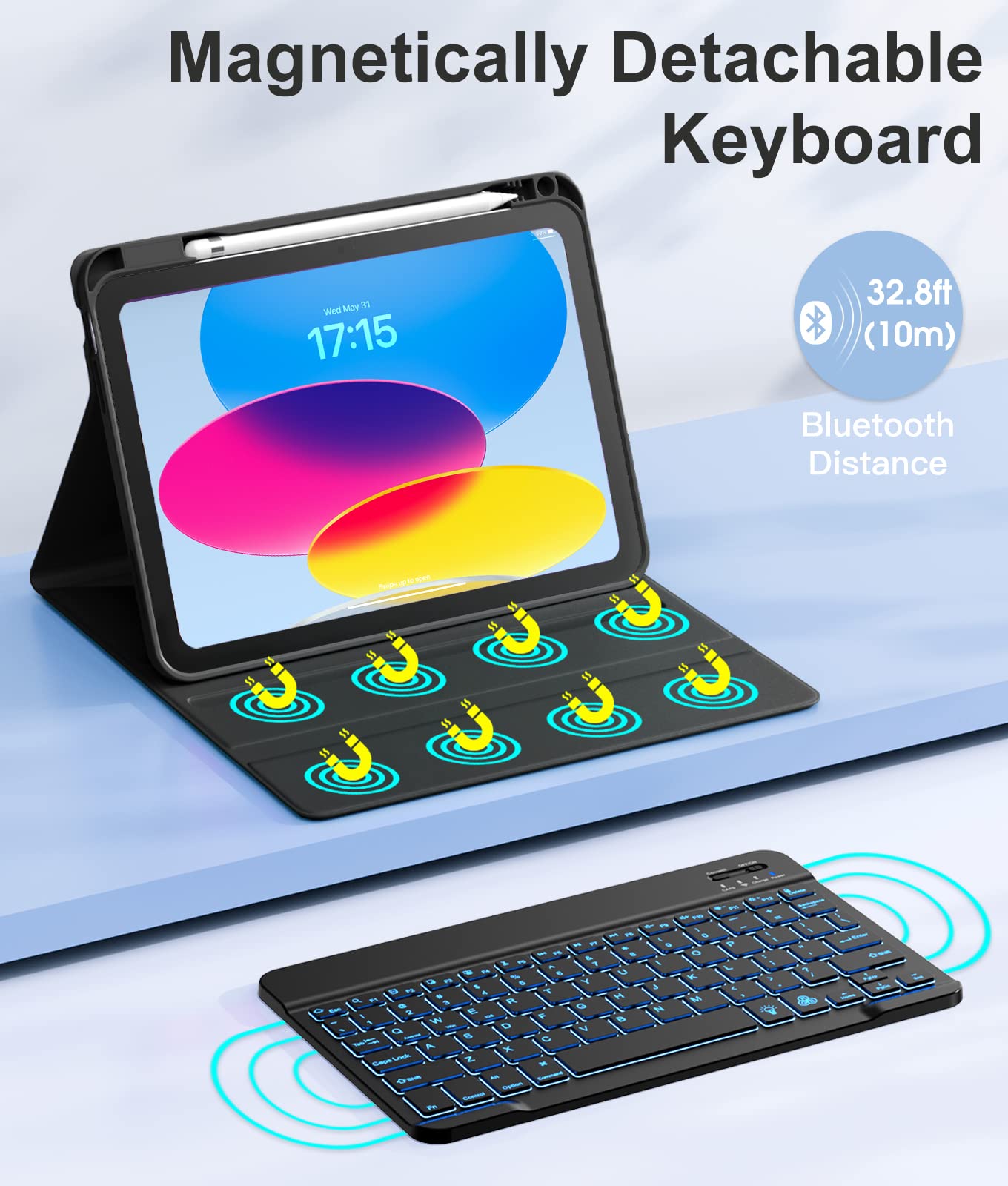 Magnetically Detachable Keyboard: This for iPad 10.9 case with keyboard is magnetic so it can be easily repositioned or removed from the case. Equipped with useful shortcut keys and compatible with IOS, Windows, and Android systems, provide you with ultimate convenience