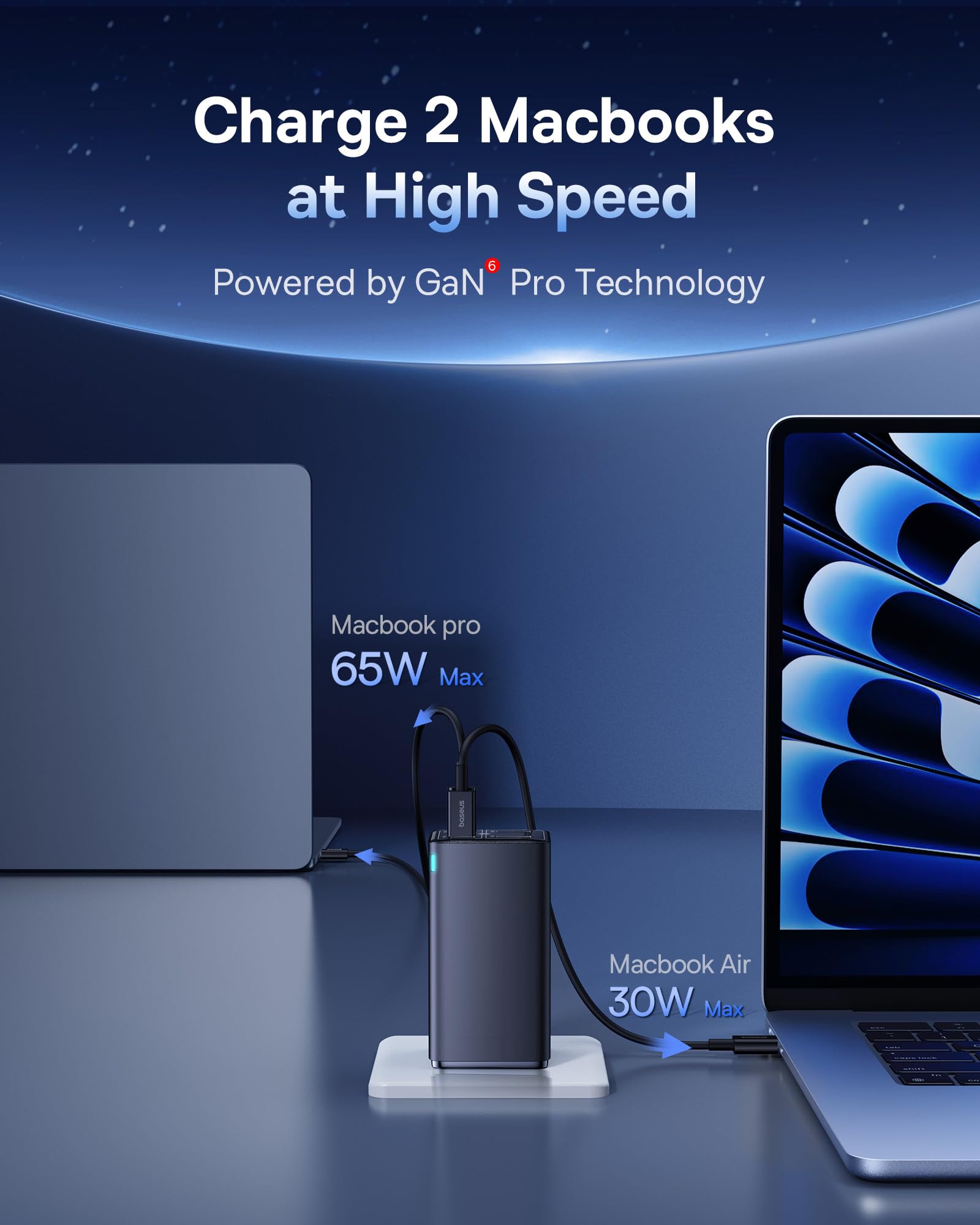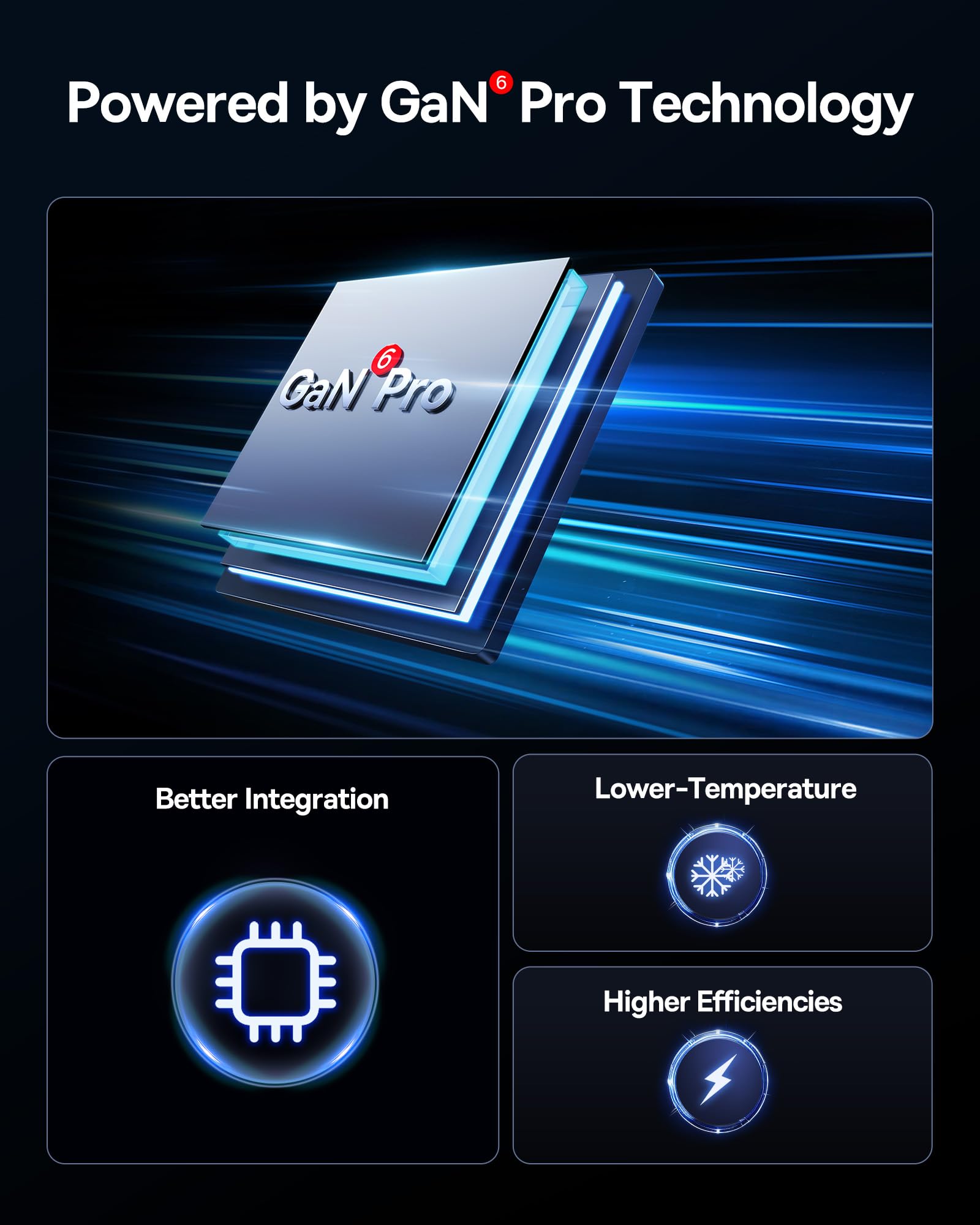 Powered by GaN6 Pro Technology: Equipped with the latest GaN6 Pro technology, the usb-c charger offer a much faster and efficient charging experience at a low temperature together with Baseus dual cooling technology.