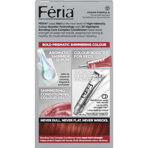 With Feria, what you see is the shimmer. Multi-Faceted shimmering color with 3X highlights delivers intensified, brilliant results. Inspired by cutting-edge fashion, Feria's prismatic color spectrum is custom-blended by L'Oreal master colorists for bold, head-turning shades β no appointment necessary. The revolutionary Power Shimmer Conditioner hydrates and conditions week after week so hair is never wrecked or ravaged.