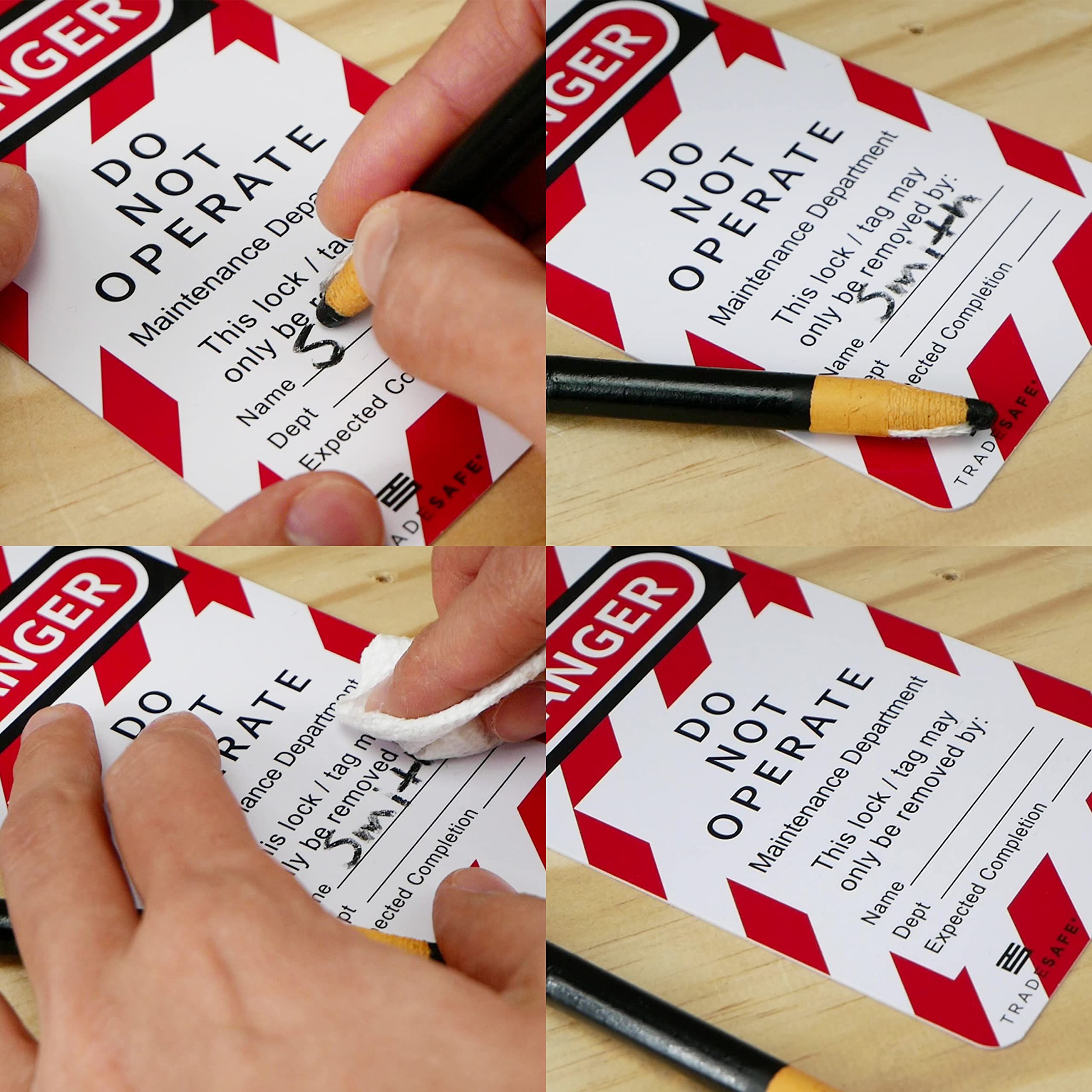Seamless Record - Equipment lock out tags with spacious surface for legible notation of critical lockout tag out information using permanent markers or wax/grease pencils; regular pens won't work