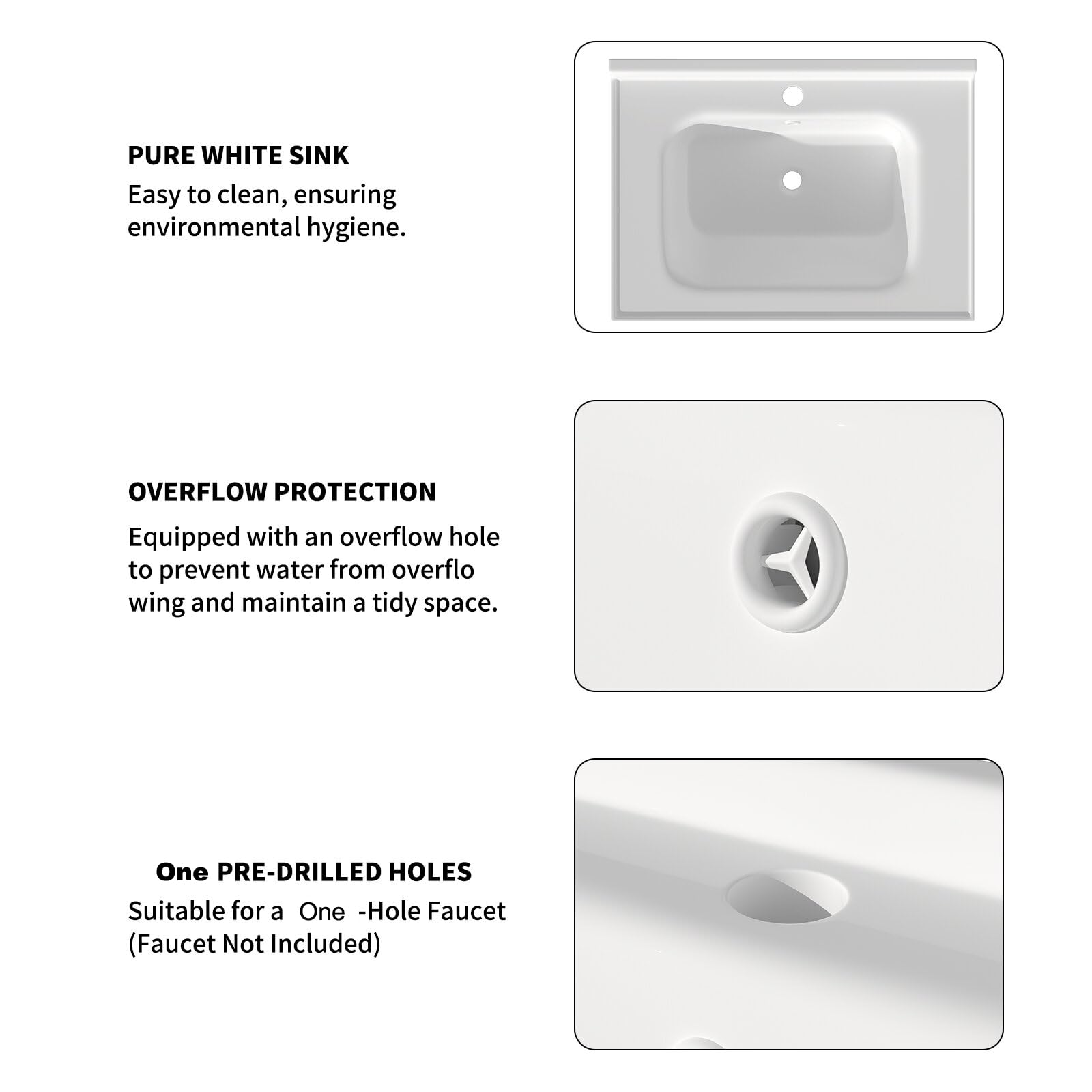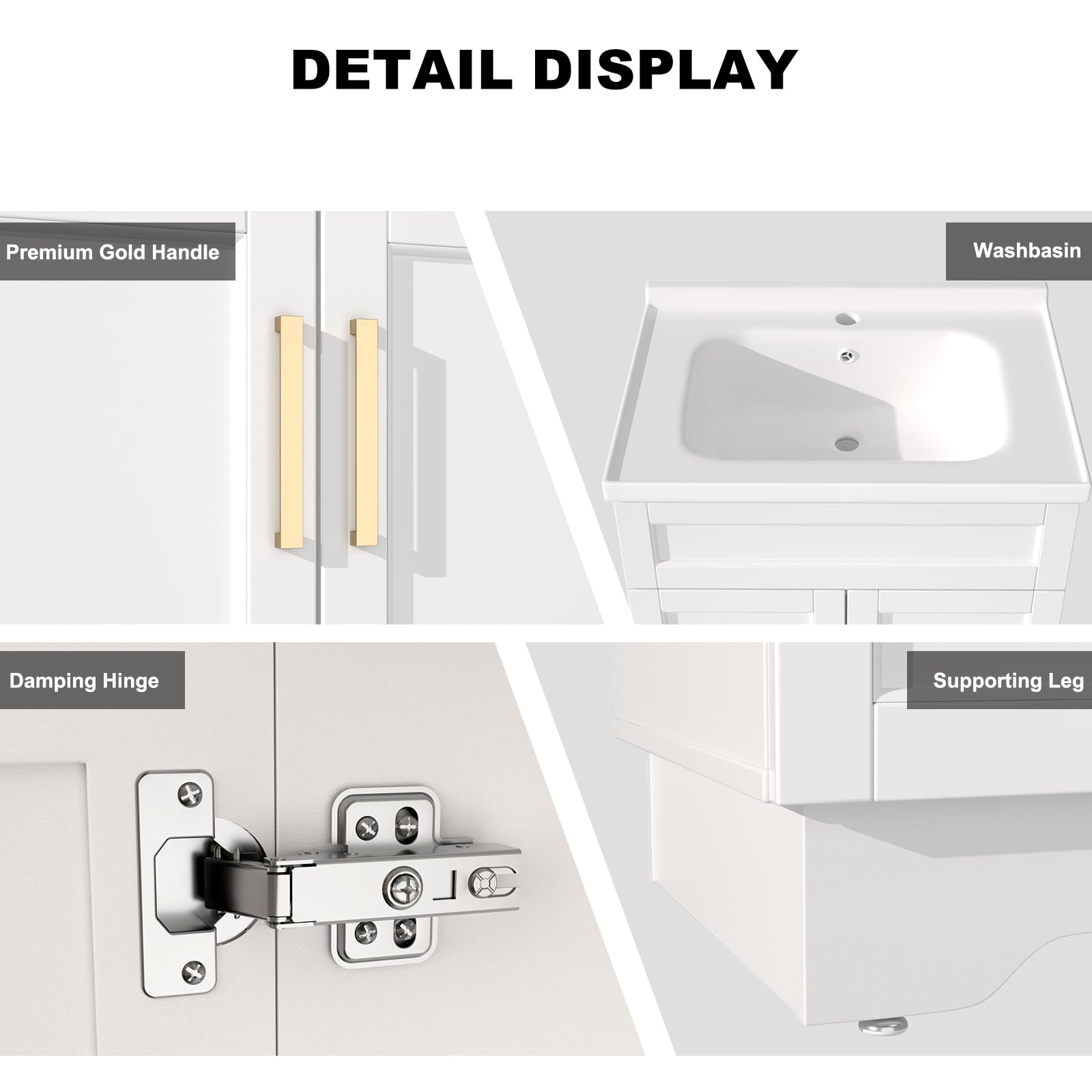 【Bathroom Sink Construction】The bathroom vanity cabinet with ceramic sink, wooden frame made of MDF board and stainless steel door hinges, robust and durable. The bathroom vanity is very sturdy and perfect for a small bathroom.