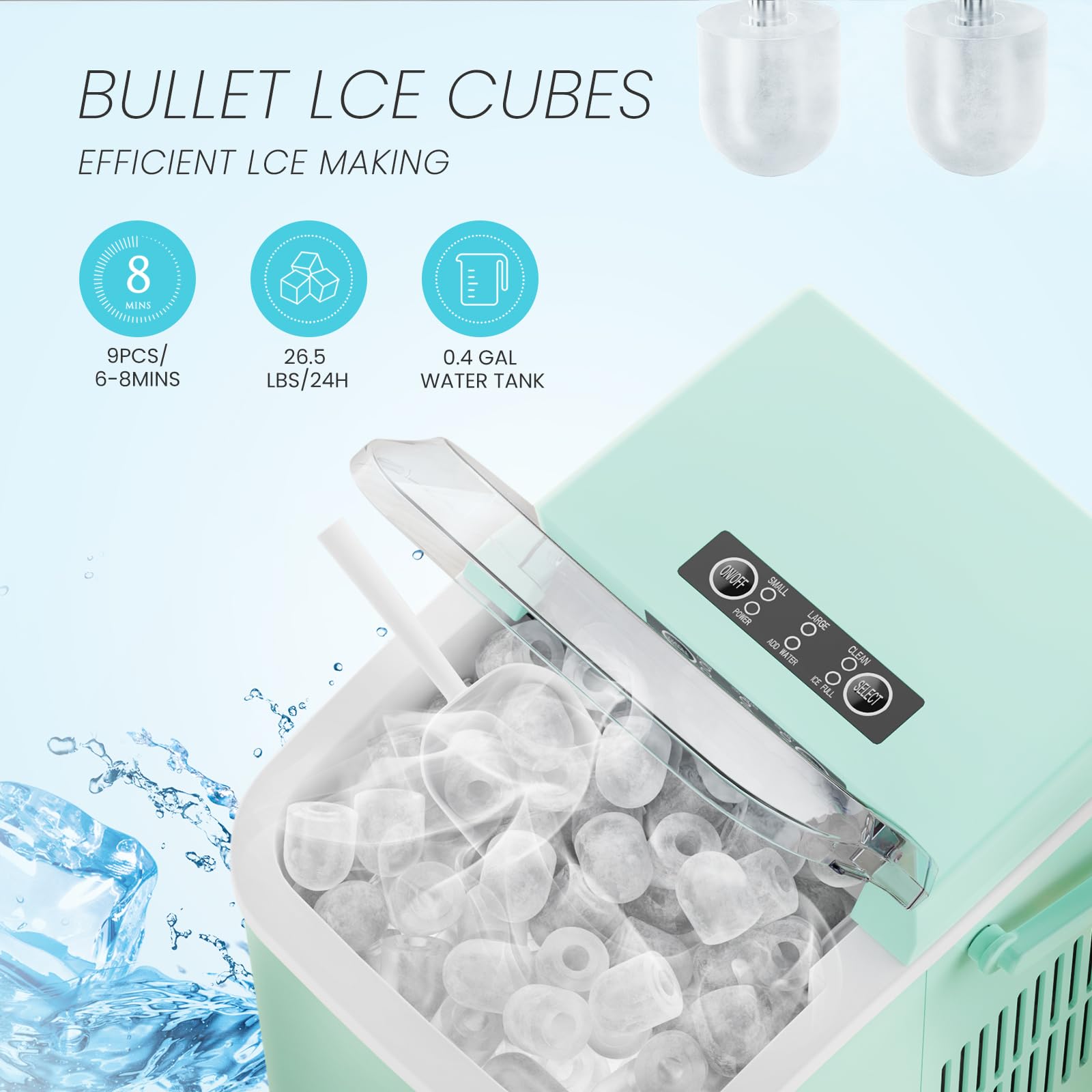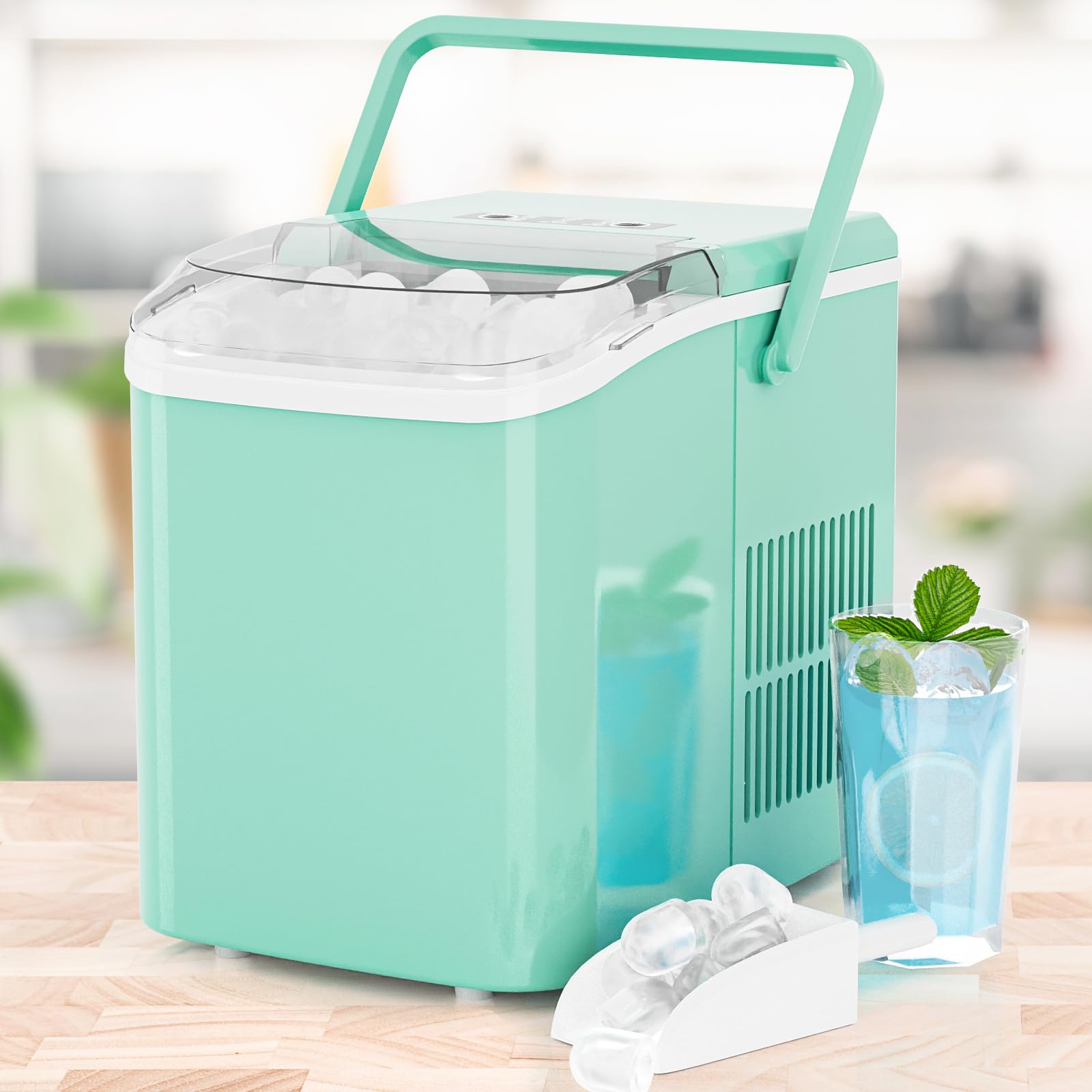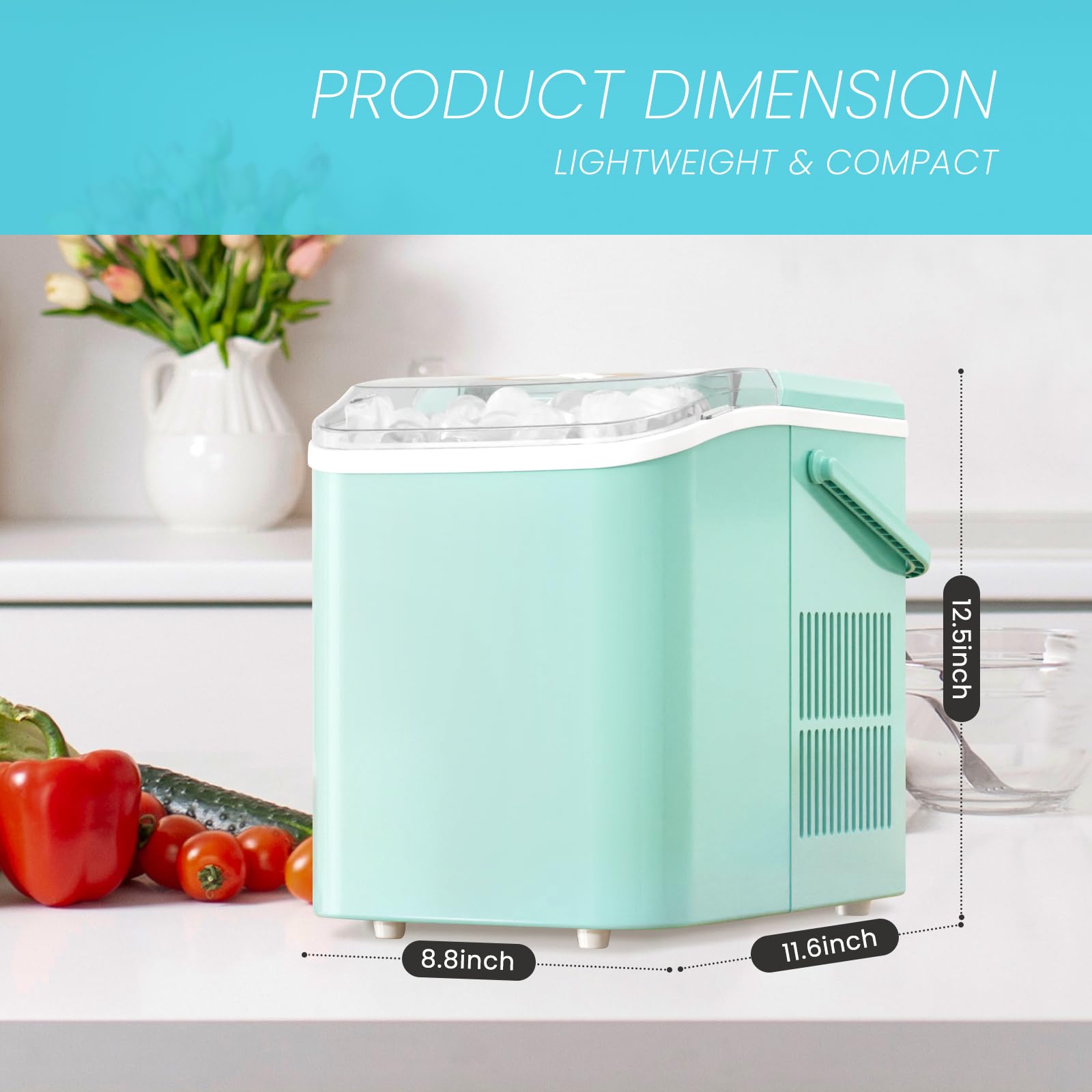 Versatile with Two Ice Sizes & Easy-Fill Tank: Enjoy customizable ice with two size options to suit any drink. The portable ice machine features a 1.5L easy-fill water tank and compact design, making it a flexible portable ice maker perfect for countertops, RVs, or small gatherings.