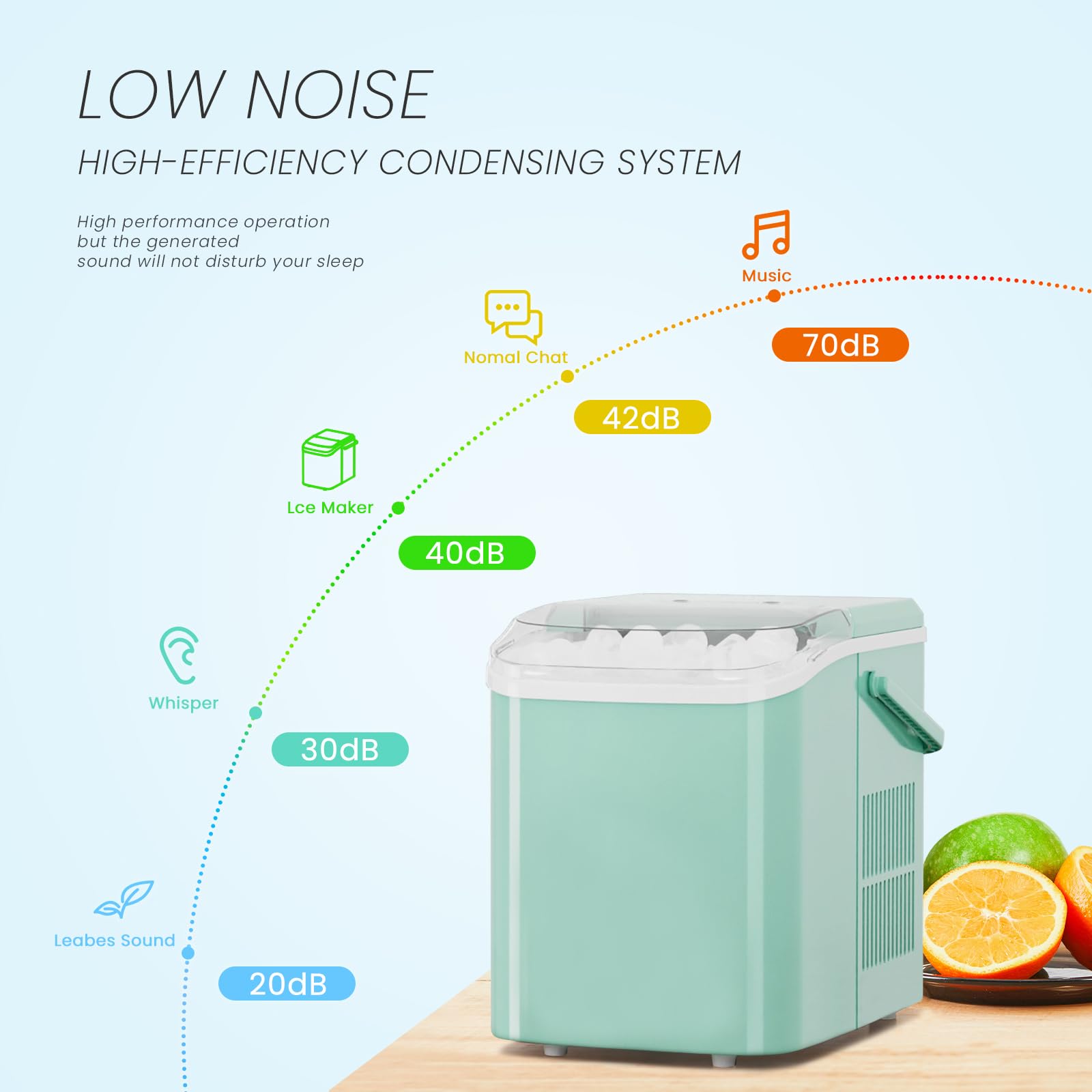 Smart Alerts & Safe Auto-Stop Features: KMFurnila portable ice maker includes indicator lights to alert you when the bin is full or water is low. For safety, the machine pauses automatically—simply press the on/off key to restart production and enjoy continuous, worry-free ice making.