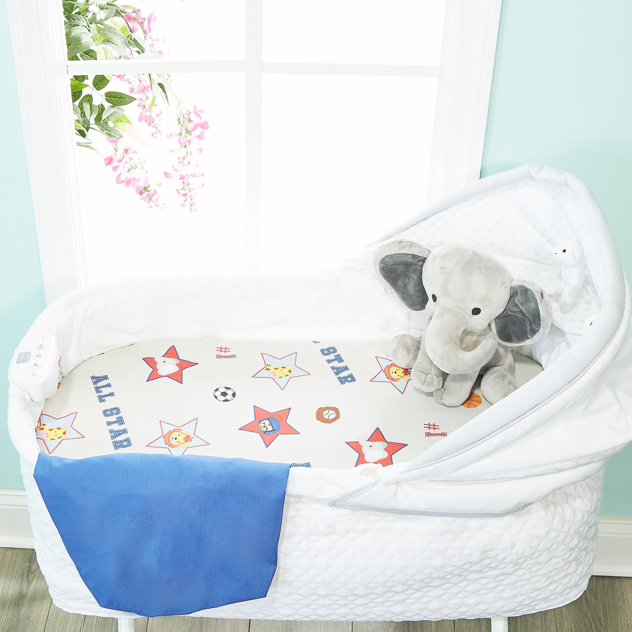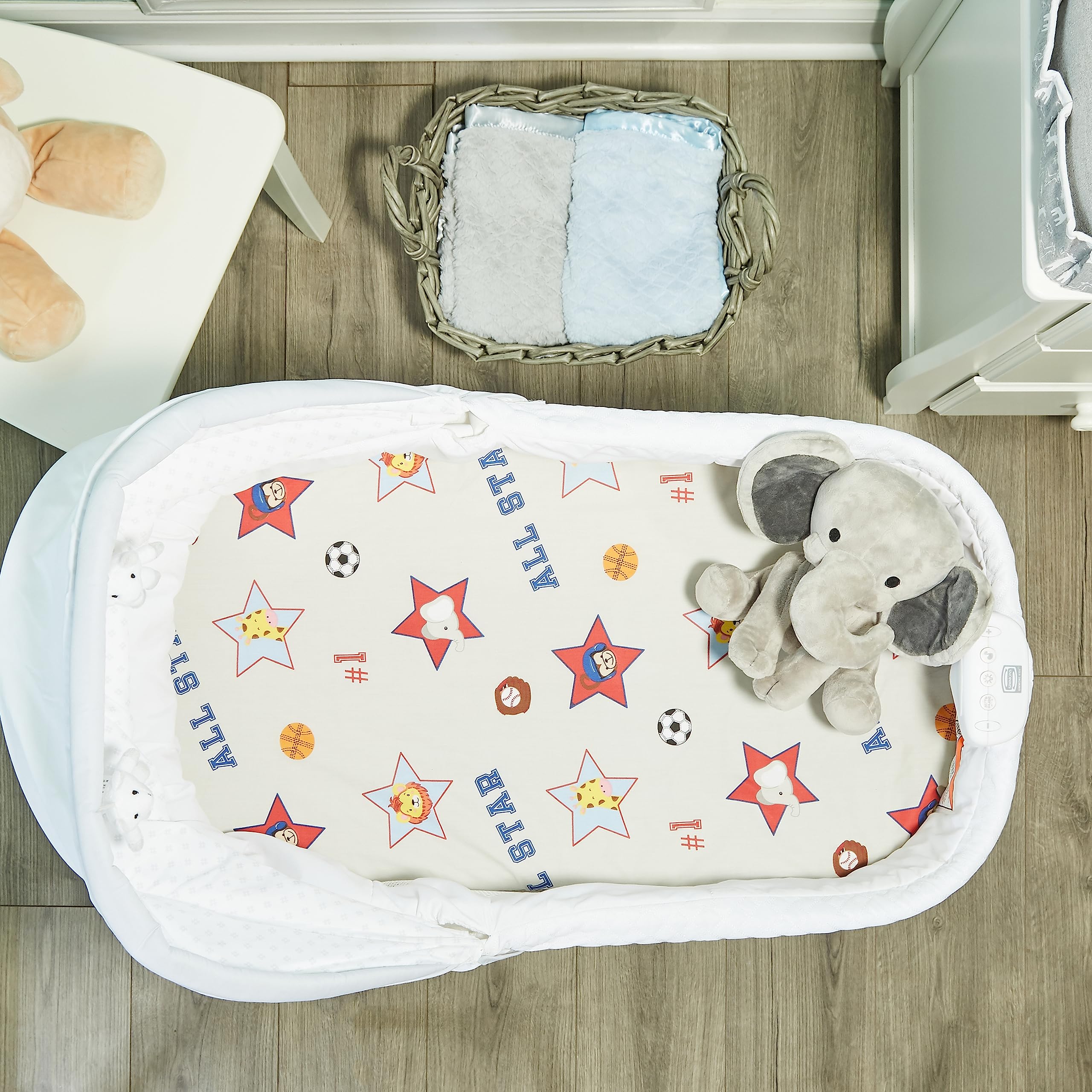 FITS A STANDARD BASSINET MATTRESS: Oval in shape with straight sides, this bassinet fitted sheet fits virtually all bassinet mattress pads. It’s stretchy enough to easily cover the pad and safely light flat while firmly staying in place