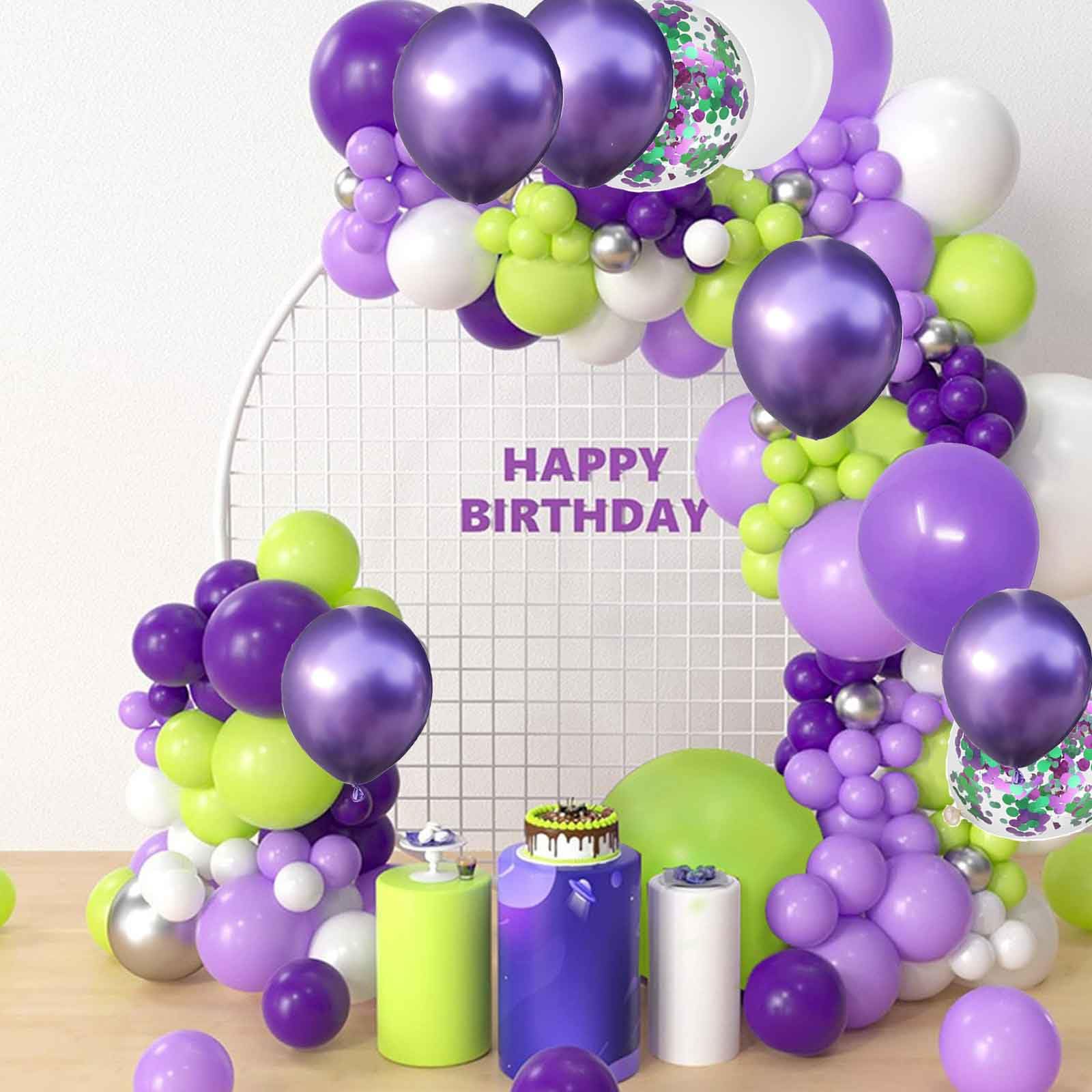 Purple Balloons Light Green Balloons And Chrome Metallic Purple Balloon with Confetti Balloons,for Birthday,Wedding,Home party, outdoor decoration,and all kinds of party decor etc