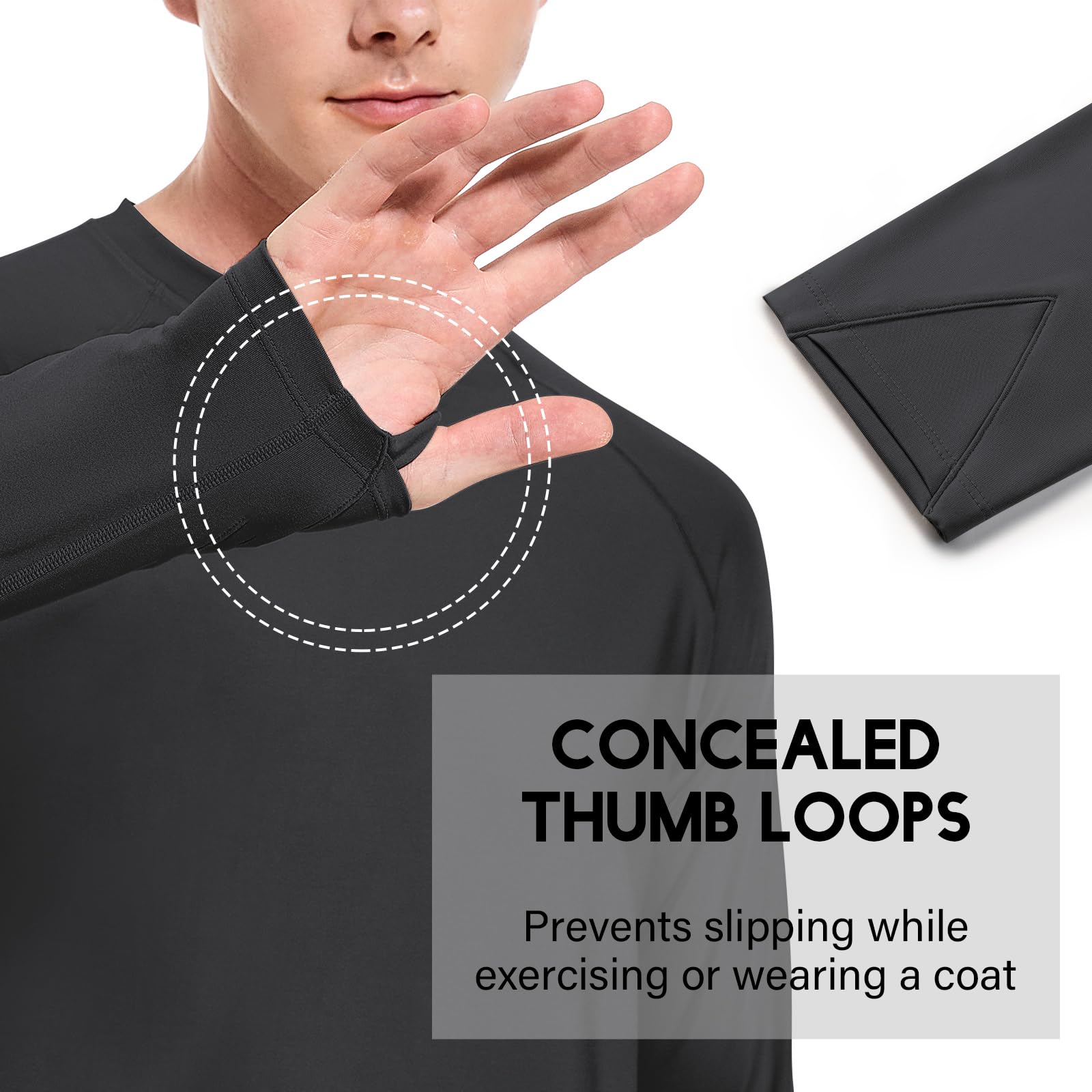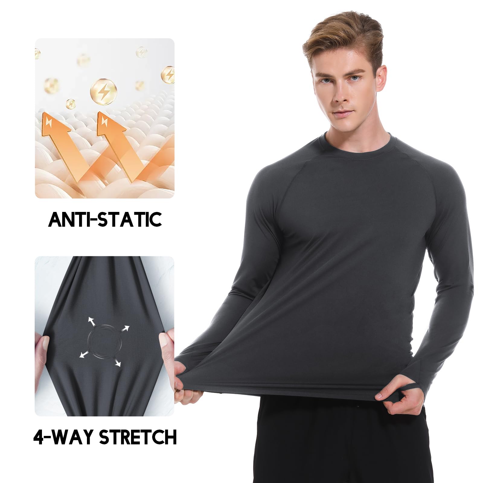 Thoughtful Design:Anti-static process, which can reduce the problem of contact static electricity in cold weather; Thumb loops,that you wont scrunch your sleeves even if putting on more layers.
