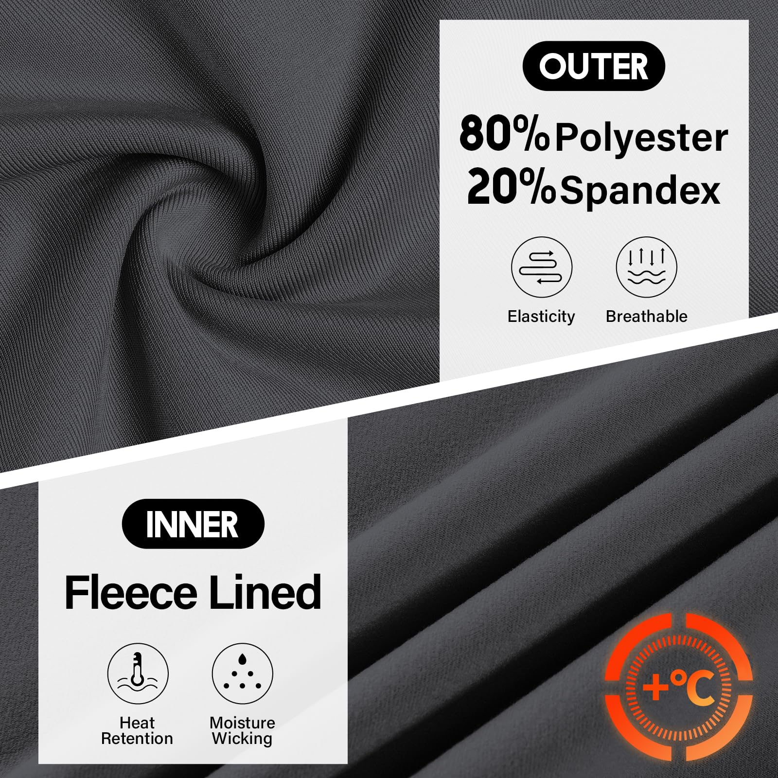 Fleece Midweight Thermal Underwear Shirts:Its made of polyester/spandex blend fabric with high density fleece lined,the insulation material which can lock your body heat well,perfect heat retention minimizing heat loss making perfect for outdoor activities in cold weather.